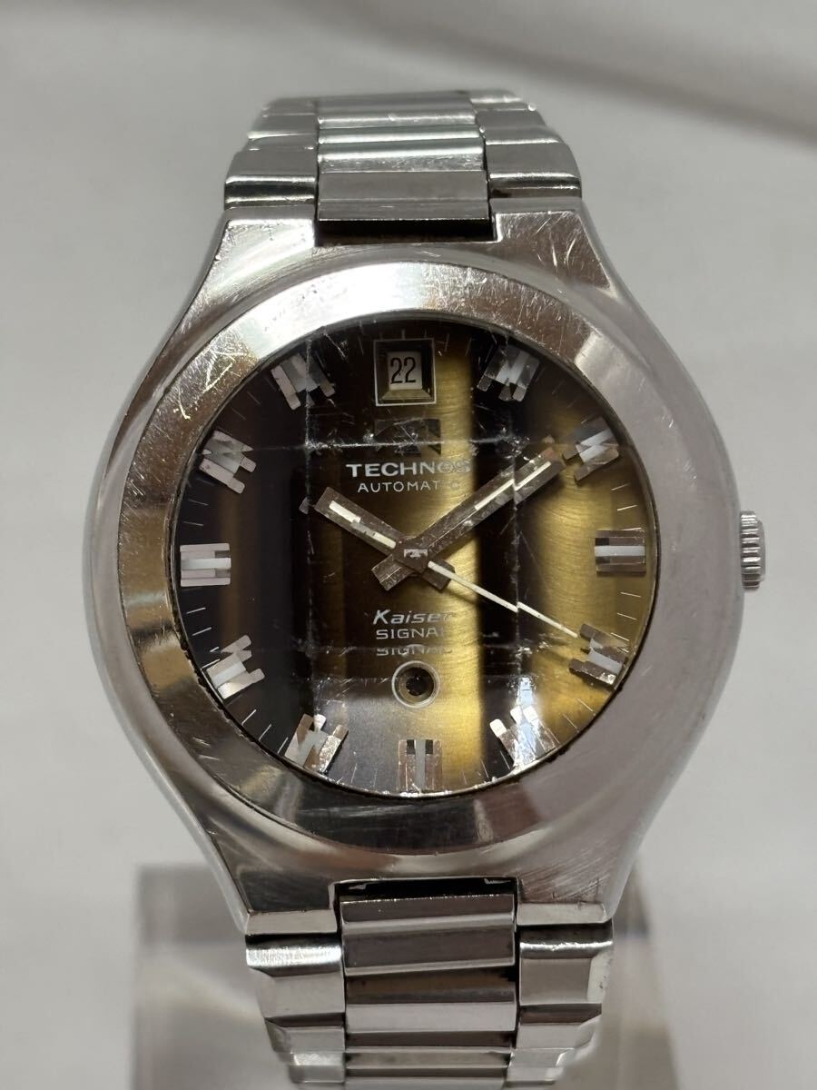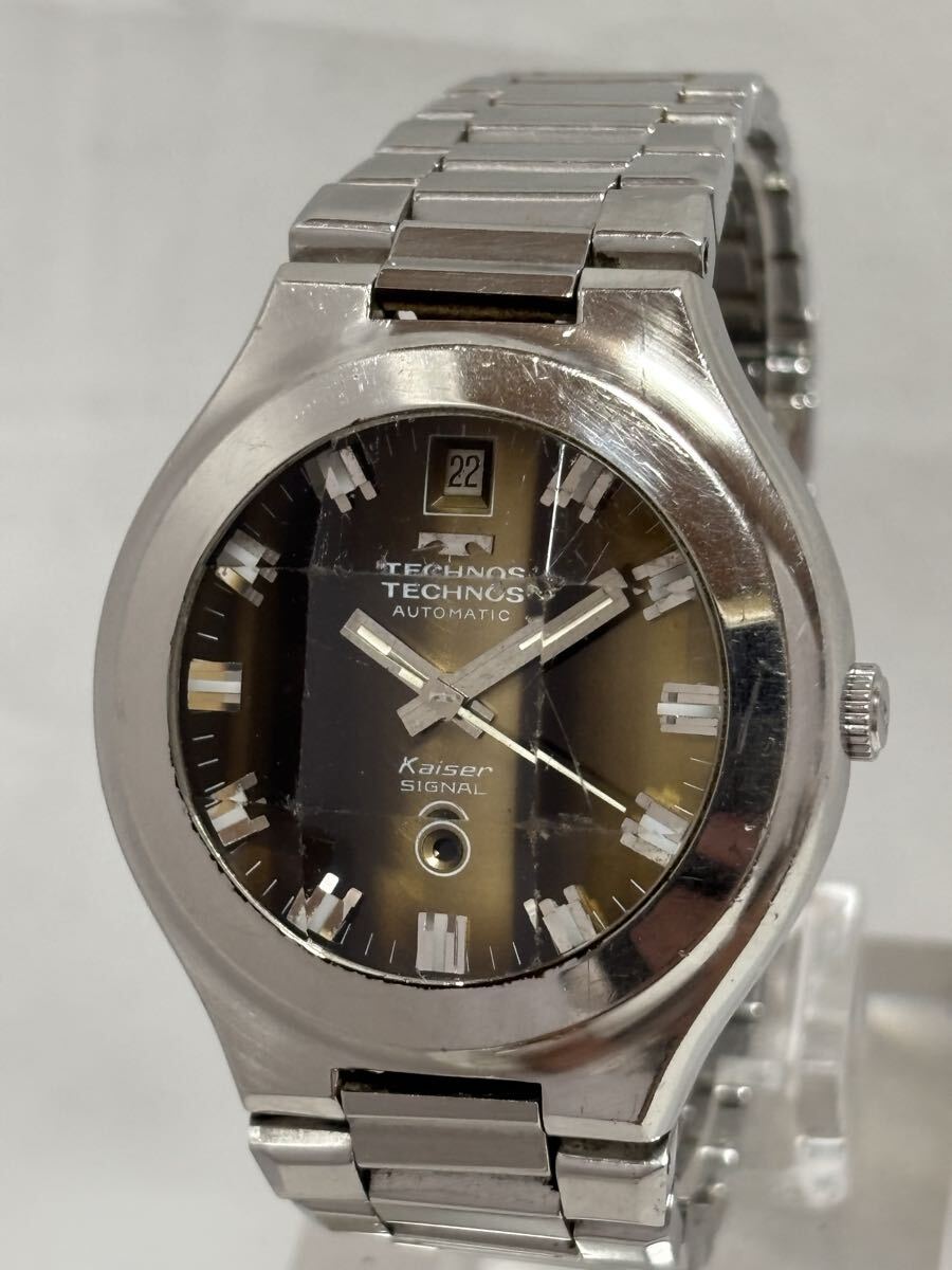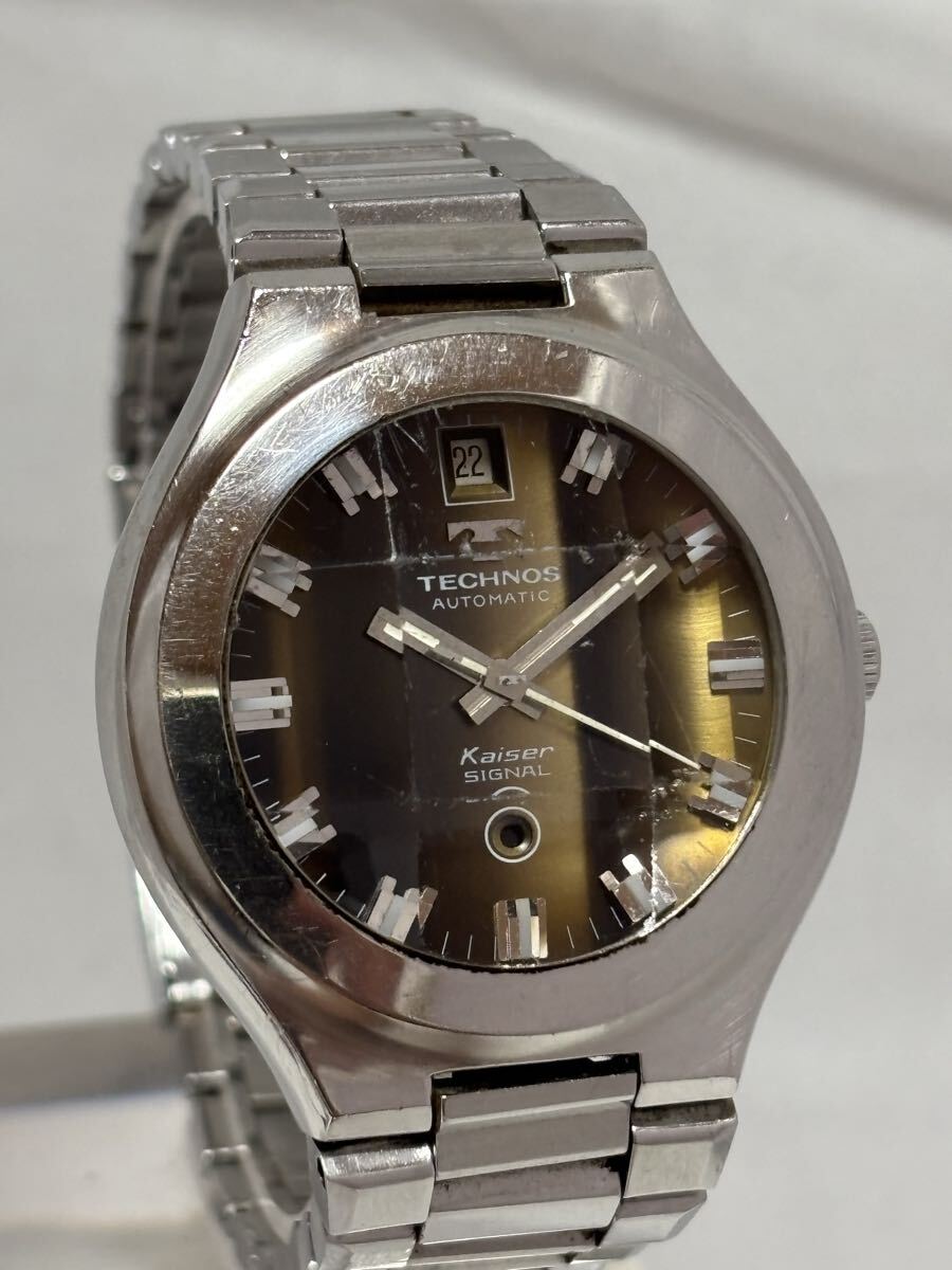 1円〜 TECHNOS テクノス カイザーシグナル 自動巻き デイト 純正ベルト カットガラス ブラウン メンズ【ジャンク】同梱不可