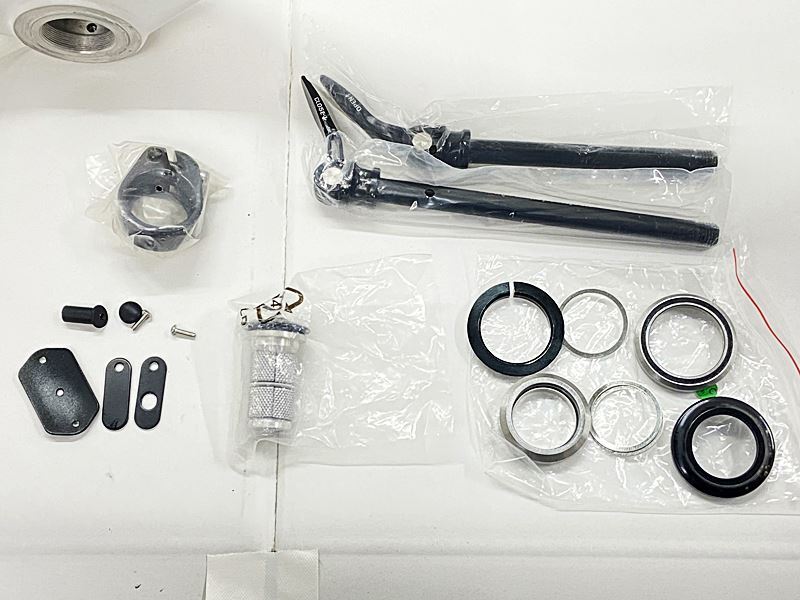 フレームやパーツに保管に伴う小傷や擦れ傷、薄い汚れ程度はありますが、未走行の超美品フレームです。