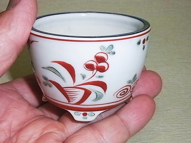 ☆九谷錦生作赤絵色入花鳥図丸鉢! *サイズ 口径外・6,5cm 高さ・4,7cm 「僅かなの誤差はご勘弁下さい」 *ニュー等目立つ傷は無い様です。(古い品の為その他僅かな悪い箇所や、小さな傷はご了承下さい)(画像をご参照下さい) *落款=九谷錦生 *九谷錦生・本田順一氏の赤絵花鳥図丸鉢です。 *出品商品は知り合いからの委託出品も含まれておりますので、ご落札後は早目のお取引をお願いします。 *終了日前日までに入札の無い場合は、出品の取り下げをさせて頂く事が御座いますが、ご了承下さい。 *市場流通金額を乱しかねない金額の場合、申訳御座いませんが、ご入札中にかかわらず、取り下げをさせて頂く事が御座いますのでご了承ください。 *商品の大・小・品物にかかわらず、「ヤマト宅急便」元払いのみの発送です。 | |