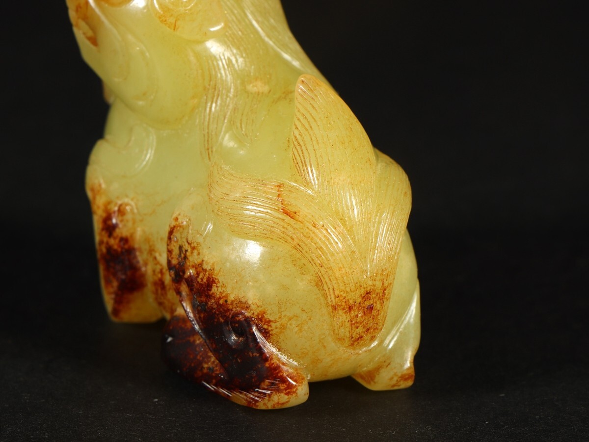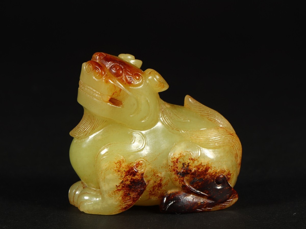 「時代物 和田玉 高古玉彫り 瑞獣」極細工 擺件 中国古賞物 古美術 旧蔵出