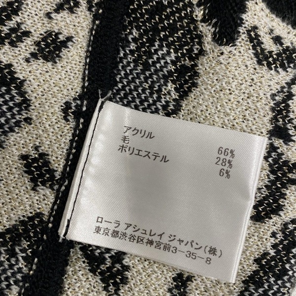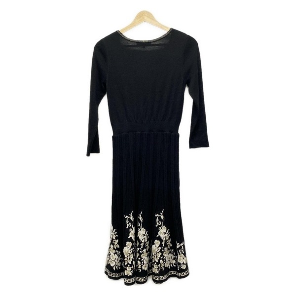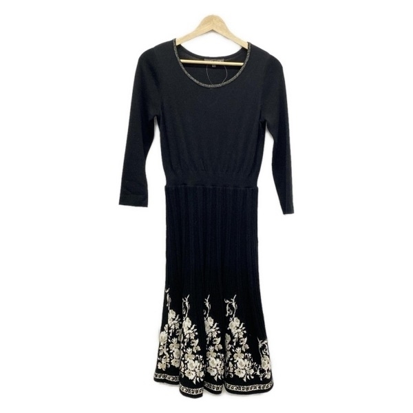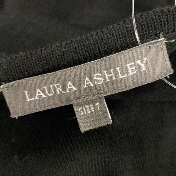 ローラアシュレイ LAURAASHLEY サイズ7 S - 黒×白×ゴールド レディース クルーネック/長袖/ひざ丈/花柄/プリーツ/ラメ ワンピース