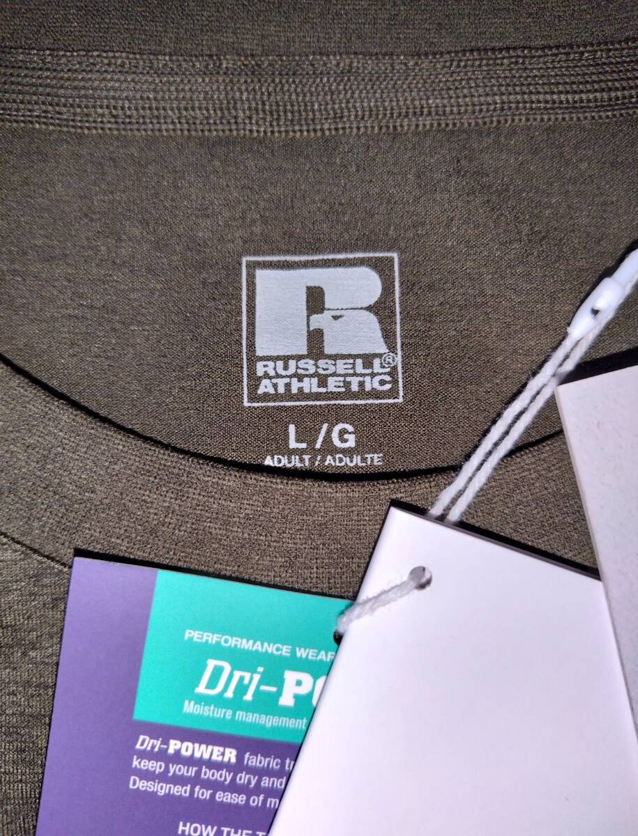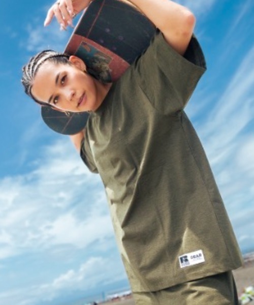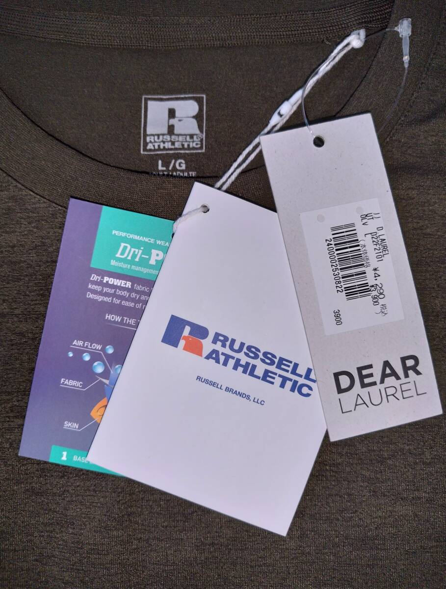 新品・送料込★RUSSELL ATHLETIC x DEAR LAUREL / 半袖Tシャツ D22F2101★ラッセル ディアローレル ドライ 速乾 ワンポイント無地 オリーブ