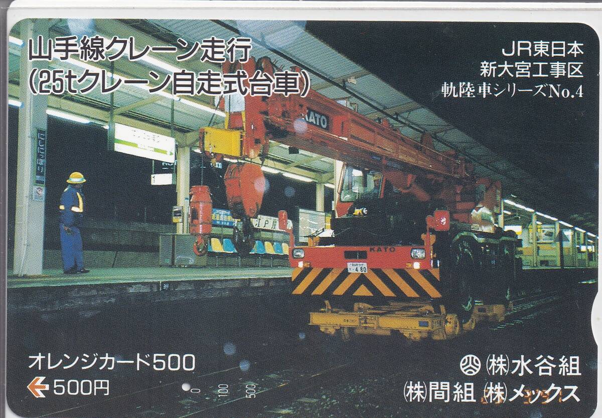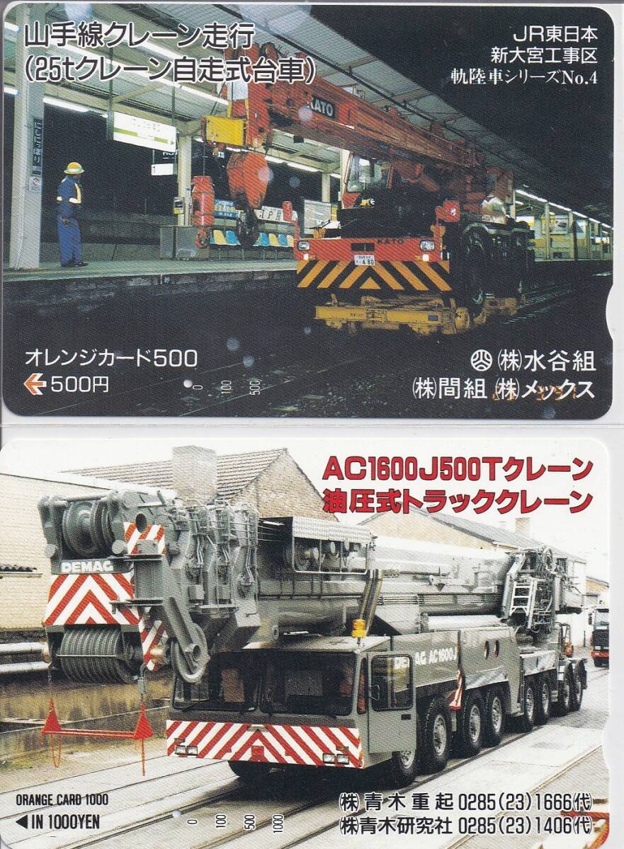 使用済フリーオレンジカードJR東日本 新大宮工事区山手線クレーン走行(25tクレーン自走式台車)500円券 AC1600J500Tクレーン1000円券2枚組