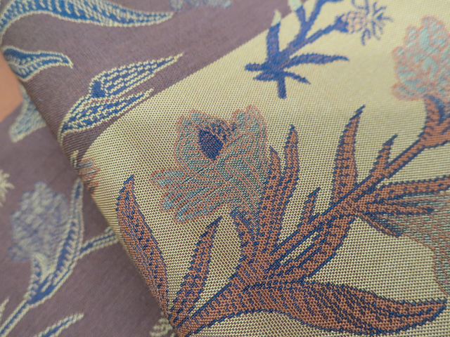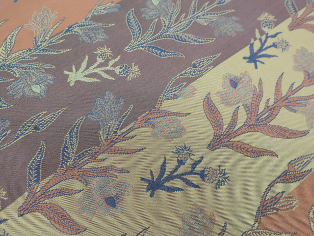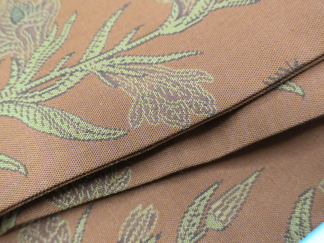 リサイクル商品ですが状態の良い綺麗なお品でございます。 地色は、茶色です。 1枚目の画像が近いお色かと思われます。 素材は正絹です。 |