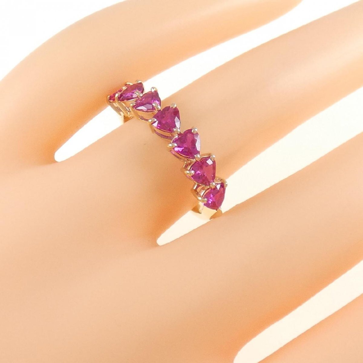 キャンディーのような甘い煌めきのルビーをハートモチーフにセッティング。指元をスウィートに飾ってくれそうです。