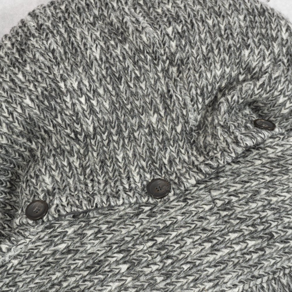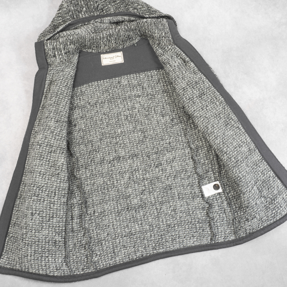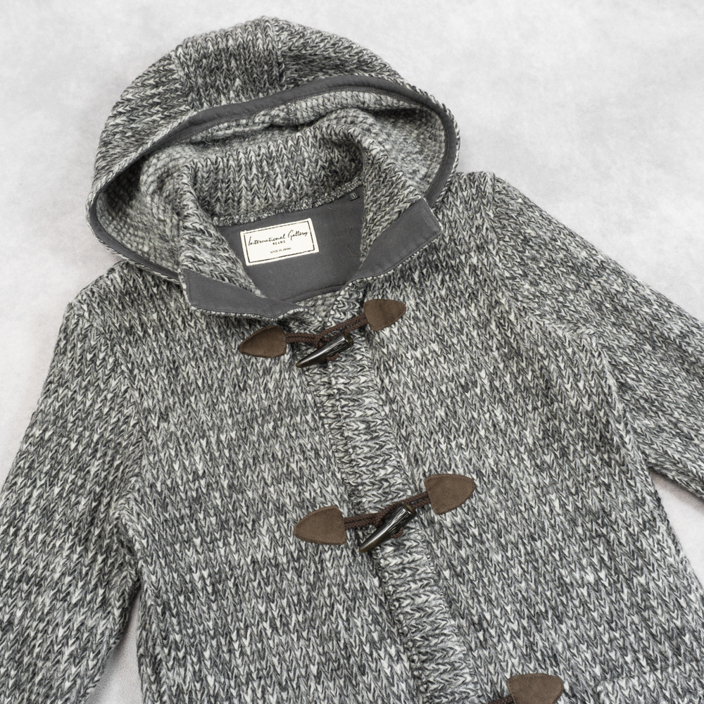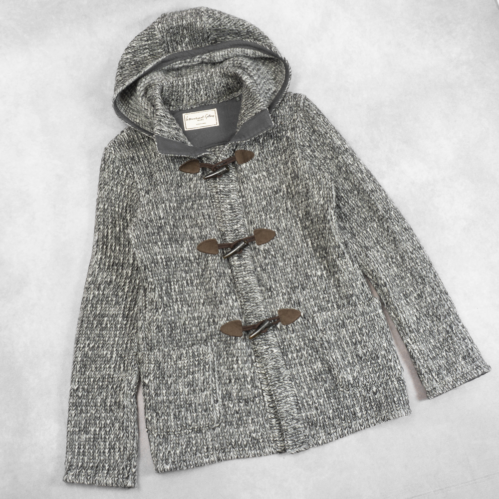 洗練されたグレーに取り外し可能なフード、トグルボタンを配したデザインでカーディガンの様に羽織れる様々なスタイルに合わせやすいかと思います。