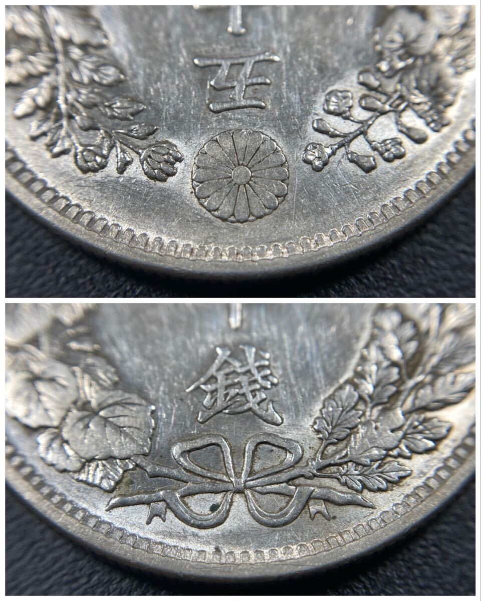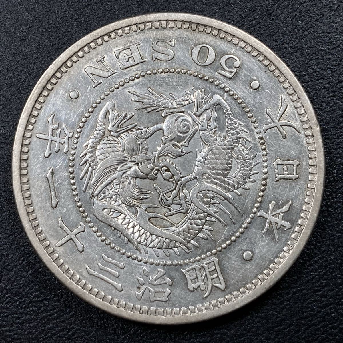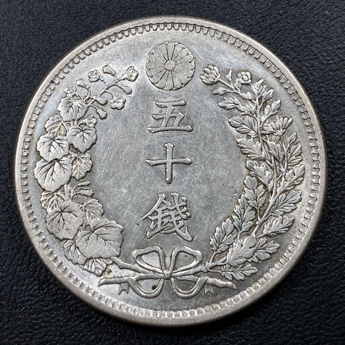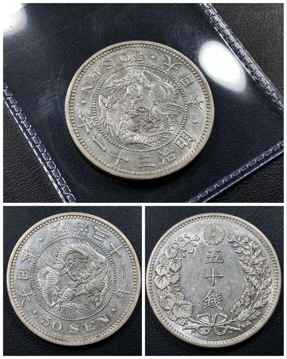 こちらは入手時極美品の竜50銭銀貨の明治31年になります。