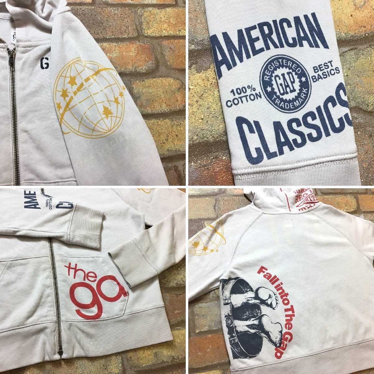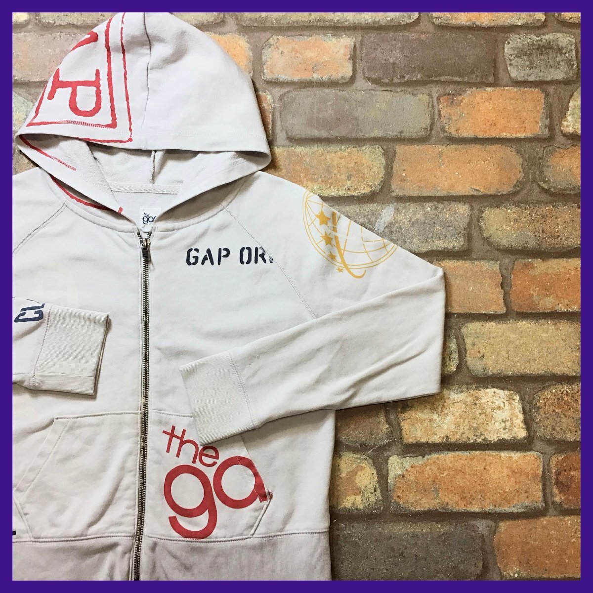 合計落札金額¥8,000円以上で、、、 送料無料!! ※こちらからの[合計支払い金額通知]をご確認の上、お支払い下さい♪ -------------------------------- 【 gap ギャップ 】 総柄 ジップアップ スウェットパーカー ● USA輸入・正規品 ● ● 海外サイズ規格 ● -------------------------------------------------------- ・フード・左袖に小穴有り。 ・両袖にヨゴレ有り。 総柄デザインの存在感抜群なお薦めの1着です◎ ------------------------------------------------------ ◆ サイズ ◆ ボーイズ L 10 ※下記実寸のご確認をお願いいたします。 ◆ 実寸◆ 肩幅:--cm 身幅:44cm(両脇下間を計測) 着丈:45cm(背面襟元~裾を計測) 袖丈:64cm(ラグラン袖の為、袖先から首元を計測) 素人採寸の為、多少の誤差はお許しください。 -------------------------------------------------------- ◆ 素材表記 ◆ 素材表記タグ欠損により不明。 ※おそらくコットンだと思われます。 -------------------------------------------------------- | |||||