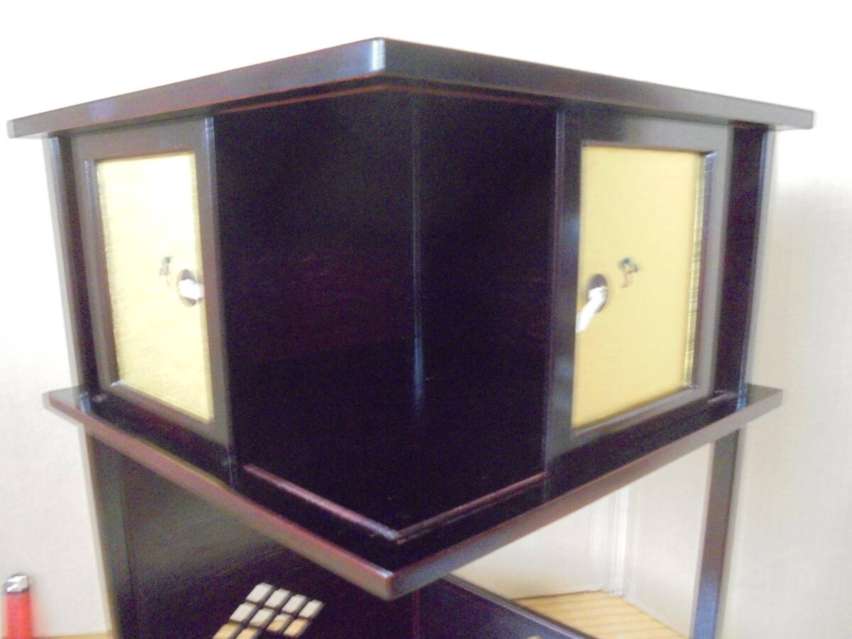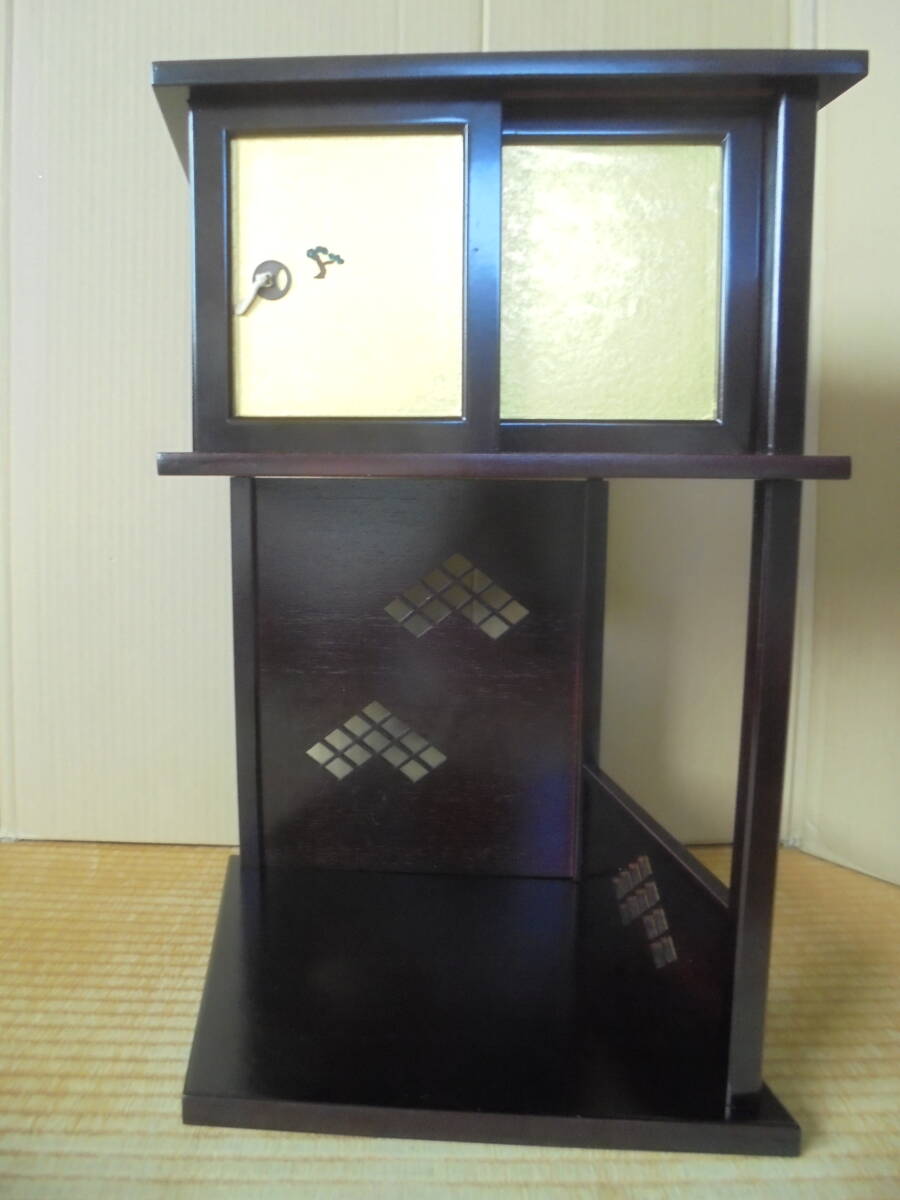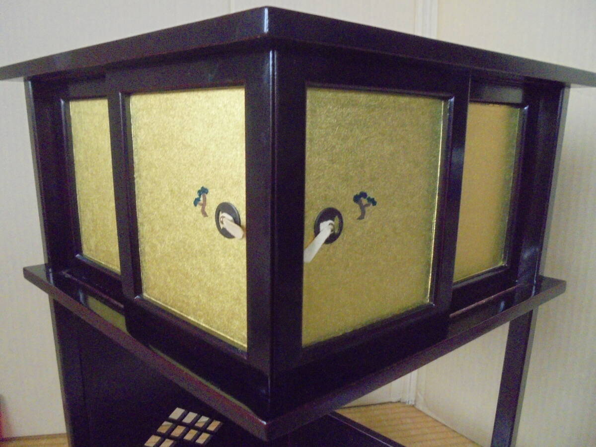 淡々斎好の「業平棚」です。松絵小襖付袋棚があります。レトロ品で底板裏にはイトスレがありますが棚は良品です。組み立てて高さ40縦㎝、幅縦47㎝、奥行き38㎝程度あります。 ◎ 当品の送料は120サイズで、「ヤフ-指定おてがる配送のクロネコ割引価格」と同料金です(送料は落札者負担で匿名配送不可です)。定形外が可能な商品は、当方が取引ナビにてご提案させていただきます。 ◎当方の出品商品は、今後の落札の有無にかかわらず、7日間程度の取り置き(同梱包)をお伺いいたしますので、取引ナビに「取置希望」を明記していただければ、取り置きを歓迎しますのでごゆっくりどうぞ。なおヤフ-システムではかんたん決済利用は落札後5日以内となっており、それ以降は銀行振り込みとなり詳細は落札後ご案内します、簡明のため落札毎のかんたん決済も歓迎します。 ◎また商品の作者が明記され真作・肉筆と記載している場合、真作・肉筆が疑われる根拠がありましたら返品・返金します。 ◎なお当方が入手した個人情報は、この取引以外には使用しない、他の商品等のダイレクトメ-ルをしない、取引完了1ヶ月後には全ての個人情報を消去する事を厳守いたします。