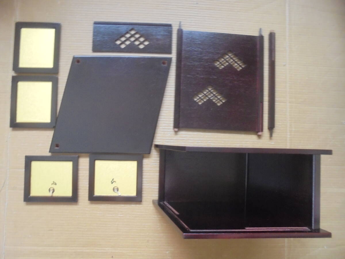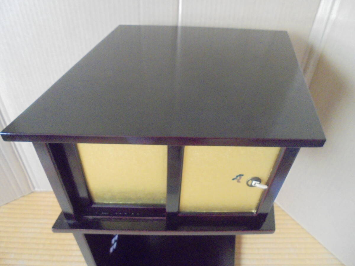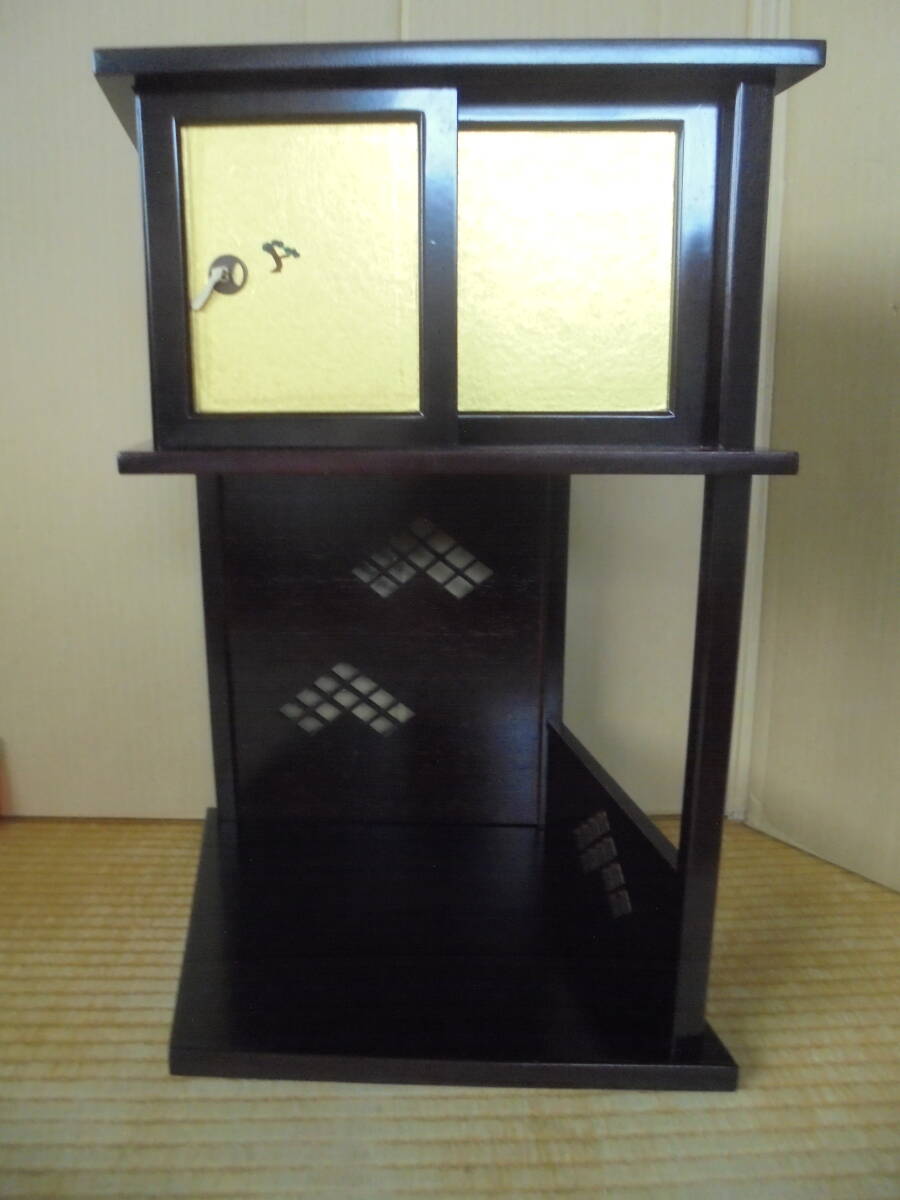 淡々斎好の「業平棚」です。松絵小襖付袋棚があります。レトロ品で底板裏にはイトスレがありますが棚は良品です。組み立てて高さ40縦㎝、幅縦47㎝、奥行き38㎝程度あります。 ◎ 当品の送料は120サイズで、「ヤフ-指定おてがる配送のクロネコ割引価格」と同料金です(送料は落札者負担で匿名配送不可です)。定形外が可能な商品は、当方が取引ナビにてご提案させていただきます。 ◎当方の出品商品は、今後の落札の有無にかかわらず、7日間程度の取り置き(同梱包)をお伺いいたしますので、取引ナビに「取置希望」を明記していただければ、取り置きを歓迎しますのでごゆっくりどうぞ。なおヤフ-システムではかんたん決済利用は落札後5日以内となっており、それ以降は銀行振り込みとなり詳細は落札後ご案内します、簡明のため落札毎のかんたん決済も歓迎します。 ◎また商品の作者が明記され真作・肉筆と記載している場合、真作・肉筆が疑われる根拠がありましたら返品・返金します。 ◎なお当方が入手した個人情報は、この取引以外には使用しない、他の商品等のダイレクトメ-ルをしない、取引完了1ヶ月後には全ての個人情報を消去する事を厳守いたします。