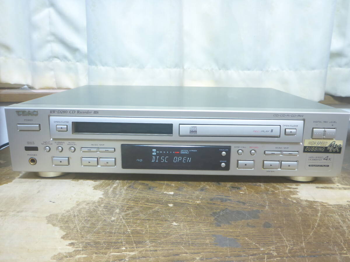 TEAC RW-D280 CDレコーダー ティアックです。電源はいりますが、トレー出ません。ベゼルなし。その他不明。ジャンク、部品取。不明な点は質問願います。ノークレームノーリターンでお願いします。発送はゆうパック着払いです。領収書、請求書発行等は対応していません。