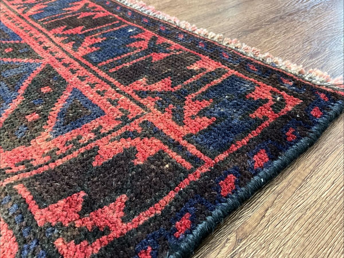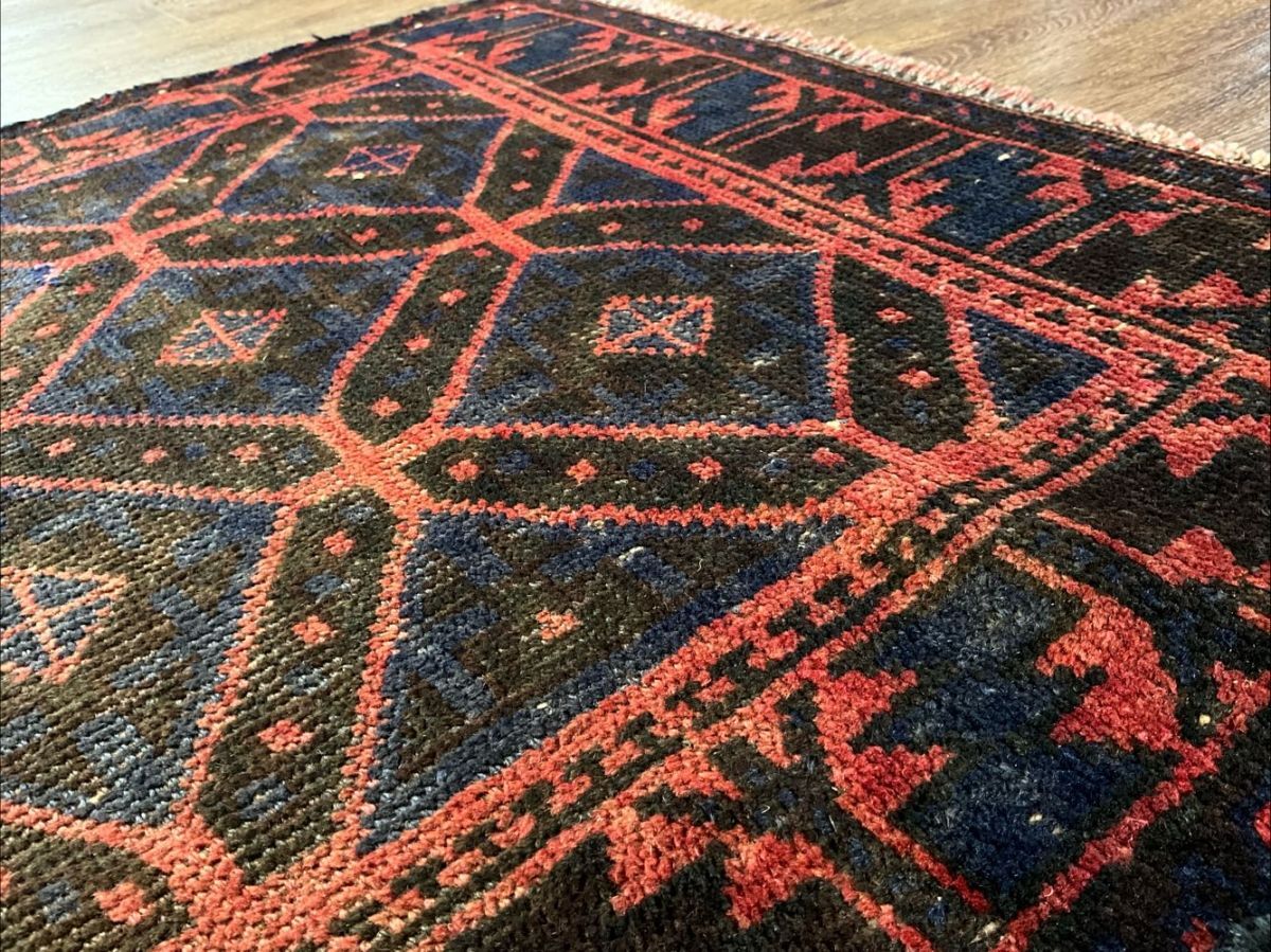 ★魔除け★上部左側にリペア痕、全体的に美しい擦れが広がっております。手織りの味わいを感じるしなやかで丈夫な織り、経年により低くなったパイルはさっぱりとした質感、家を守り悪いものを寄せ付けない魔除けのモチーフが並ぶフィールド、年代物ならではの味のある擦れが広がっており、ヴィンテージの風格を感じるオススメの一枚です。(画像をご確認下さい。)