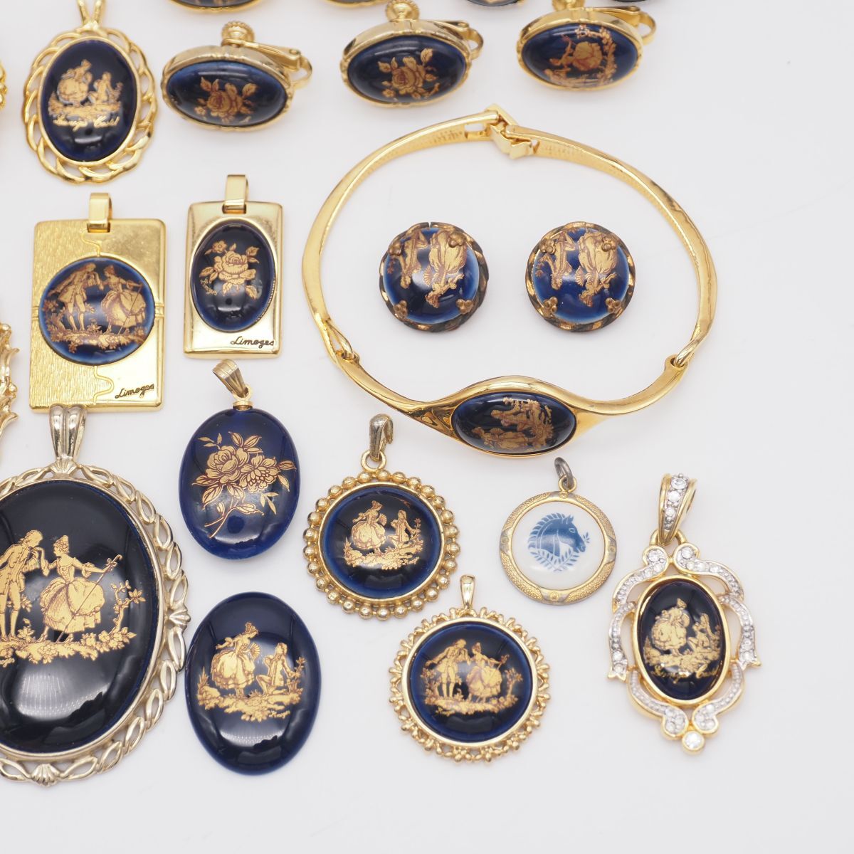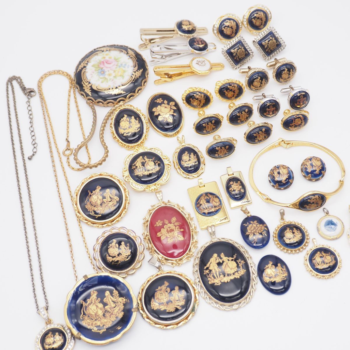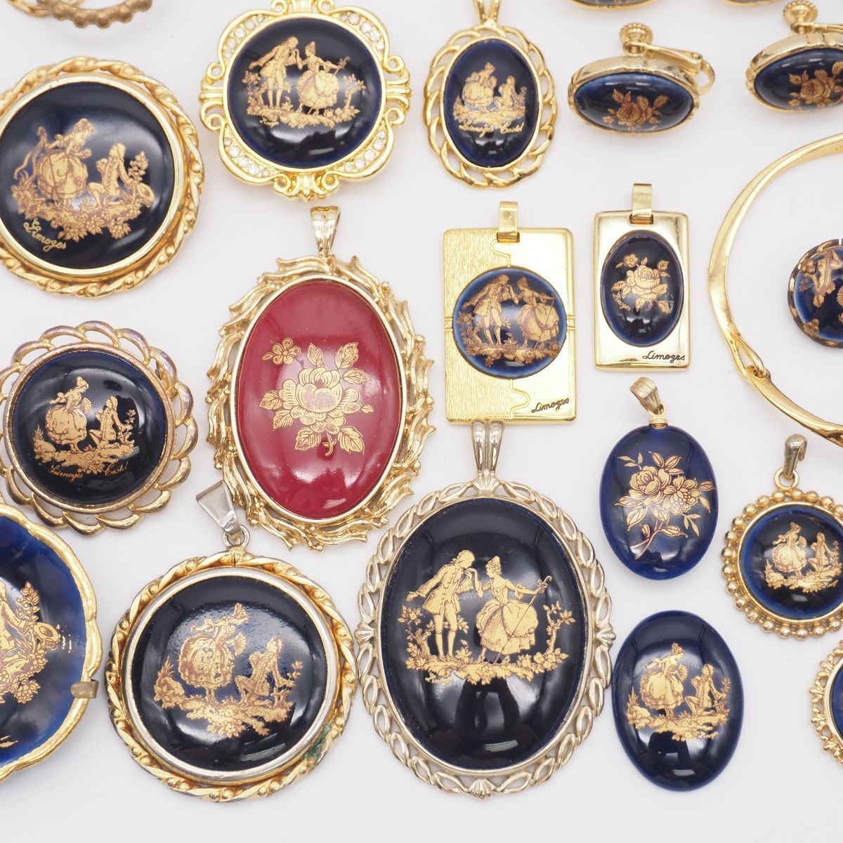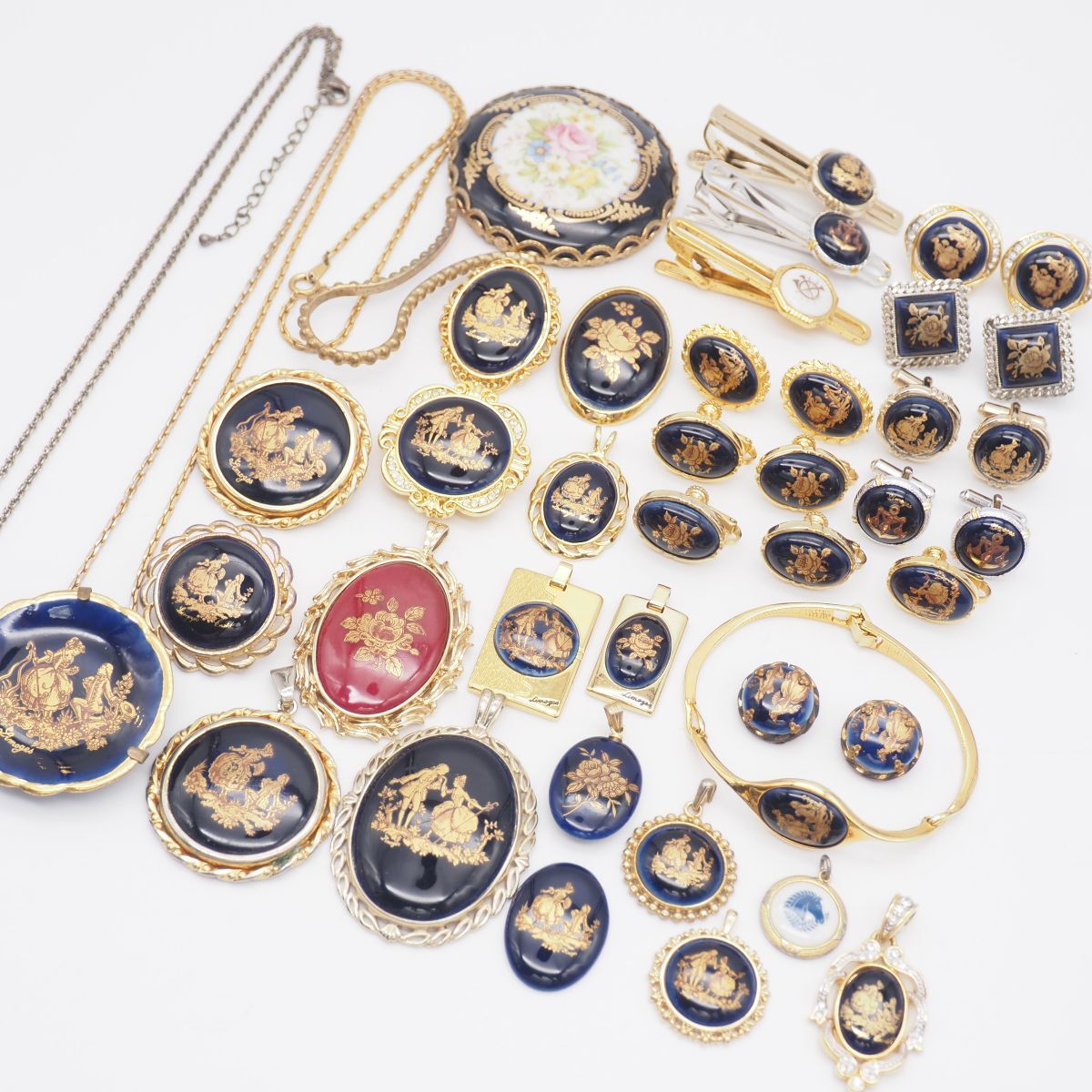 (LSM1001) 1円 リモージュ 等 陶器 アクセサリー 大量 セット ネックレス ペンダントトップ イヤリング ブローチ 等 まとめて