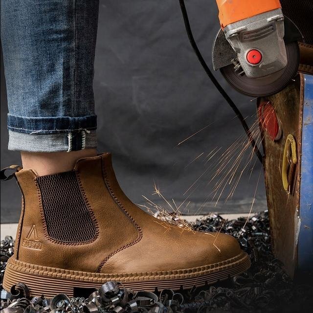 安全靴 ハイカット メンズ 防水安全靴 作業靴スニーカー 溶接用ブーツ つま先保護 おしゃれ 耐滑 チェルシーブーツ カーキ色 27cm