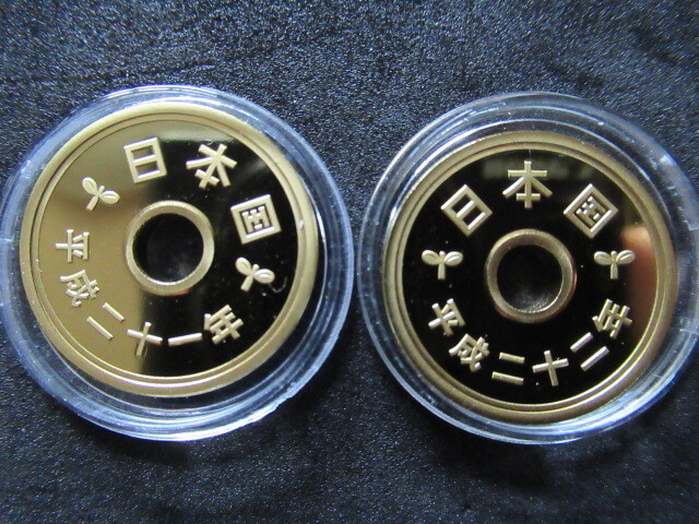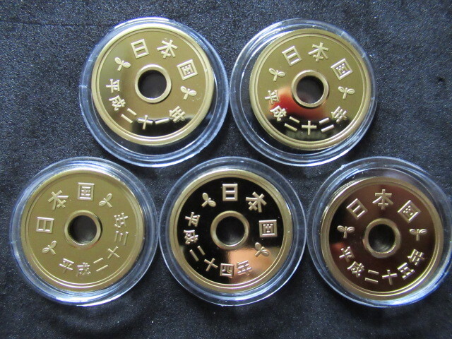 プルーフ5円貨 特年大特年5種(H21・22・23・24・25年) カタログ価23000円 プラケース入り