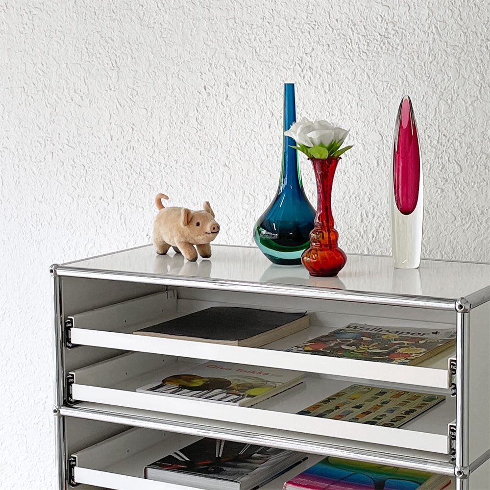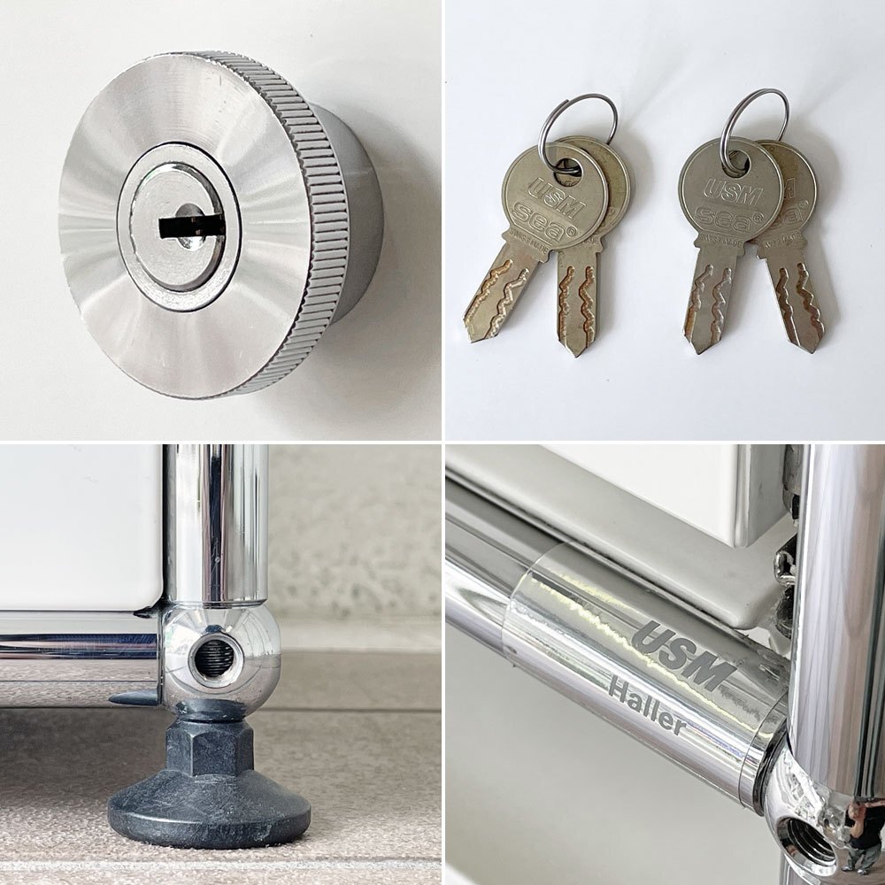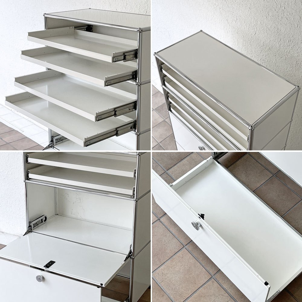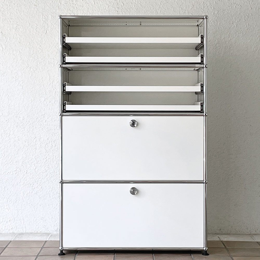 | コメント | 「一生を共にするべきインテリア」のコンセプトのもと、精密かつ高品質な家具の製造を行うスイスのブランドUSM Haller(USMハラー)より、モジュラーファニチャー キャビネットシェルフが入荷しました。 スイスの建築家、フリッツ・ハラーが開発したモジュラー式収納システムは、基本モジュールを連結し、用途に合った自由なフォルムを実現できる収納家具です。 今回入荷したのは光沢のあるクロームのフレームに清潔感のあるピュアホワイトのパネルを使用したキャビネットシェルフ。 上2段はエクステンションシェルフが備わっており、フルオープンレールとなっております。奥に収納した物でも、そっと引くだけでストレスなく取り出せます。 また、下2段にはドロップダウンドアとドロワーを備えており、家庭用品や掃除用品など、隠しておきたいアイテムなどを収納するのにぴったりなスペースとなっております。 シンプルながら大容量の収納を可能とし、雑多になりがちな書類は勿論、仕事道具やお気に入りのコレクション、衣服や生活感の出やすい日用品等、様々な用途でお使いいただく事が出来ます。 オフィスから居住空間まで幅広いシーンにマッチするUSMハラーのキャビネット。 高級感あるモダンな雰囲気を醸し出し、スタイリッシュな空間を演出してくれる逸品です。 ※当ショップは、主にリサイクル品を取り扱っております。基本的にUSED品である事をご理解頂き、ご入札をご検討下さいませ。 |