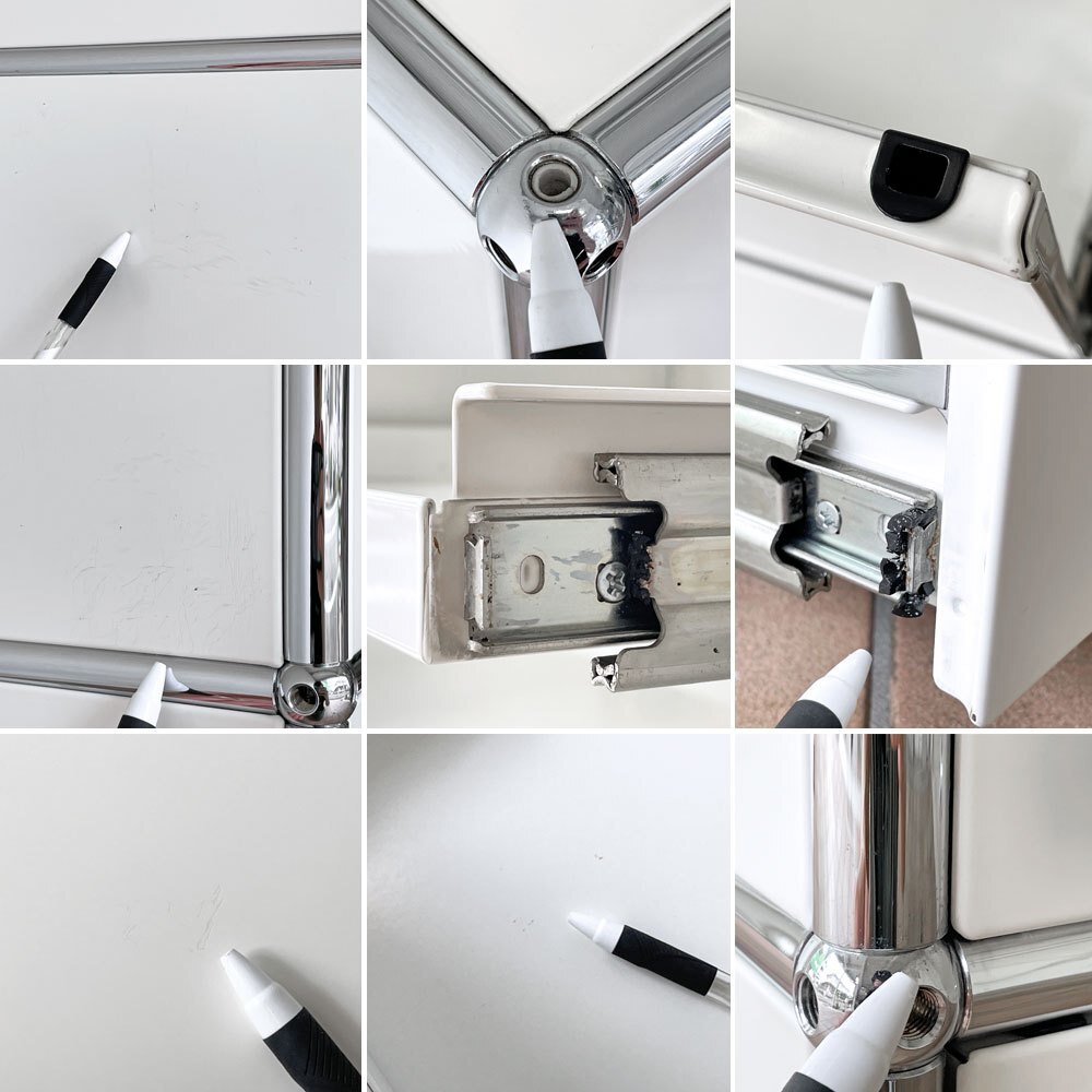 | コンディション | 使用に伴う擦れ傷の他、細かなスクラッチや裏面を中心にいくらかの線傷、ドロップダウンドア収納の内部には色移り等はございますが、いずれも通常のご使用時において大きく目立つものではございません。ほかドロップダウンドアの爪パーツや、複数のレールにおける樹脂部分に欠損が見受けられますが通常のご使用に影響するものではございません。引き続きデザインと機能性をお楽しみ頂きながらご使用頂ける、USED品として概ね良好なコンディションを保っております。 ※特筆すべきコンディションは出来るだけ記載させて頂きますが、細かい擦れや傷、汚れ等を完全にお伝えする事は出来ません。画像をご確認の上、ご入札をご検討下さいませ。 ※取扱説明書や保証書等は記載が無い限り付属いたしません。 |