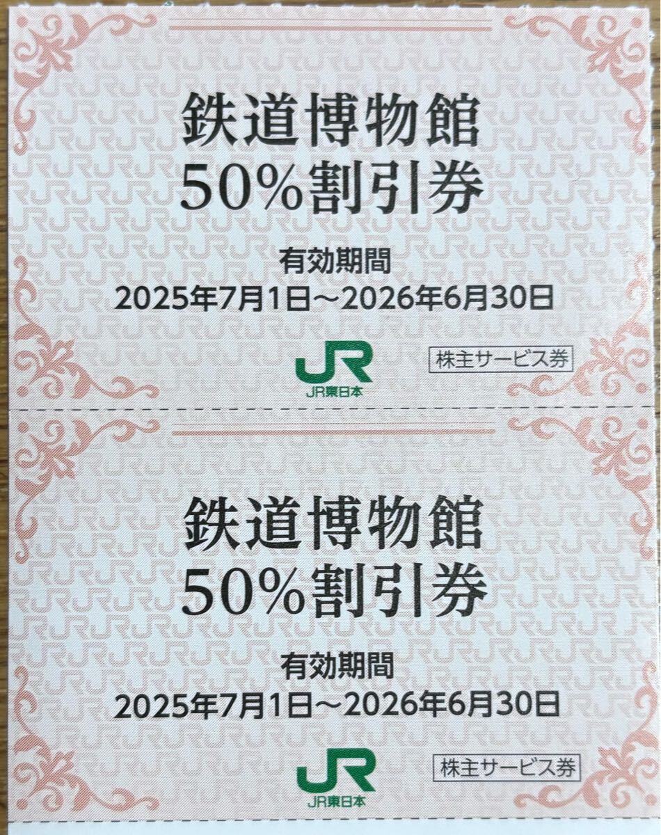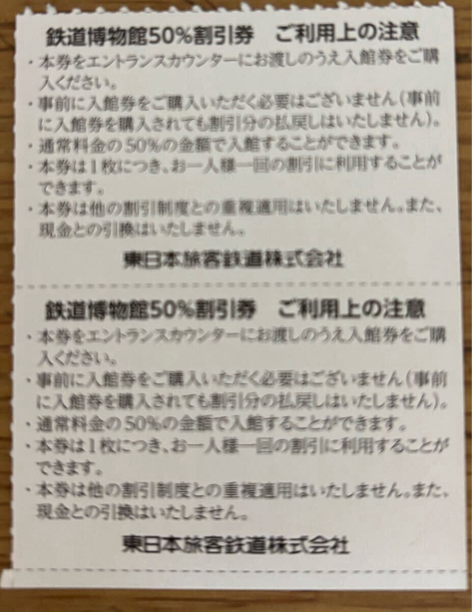 JR東日本株主優待_鉄道博物館50%割引券 2枚