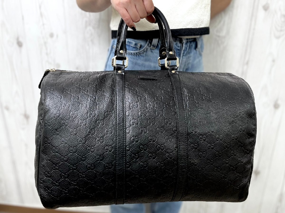極美品 GUCCI グッチ グッチシマ GG柄 ボストンバッグ ハンドバッグ バッグ レザー 黒 A4収納可 メンズ 90391 | ||
