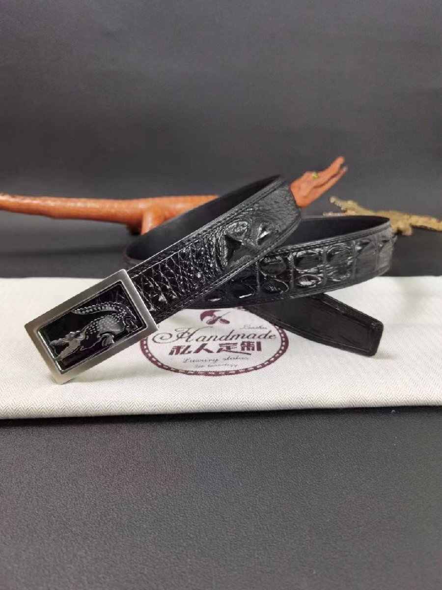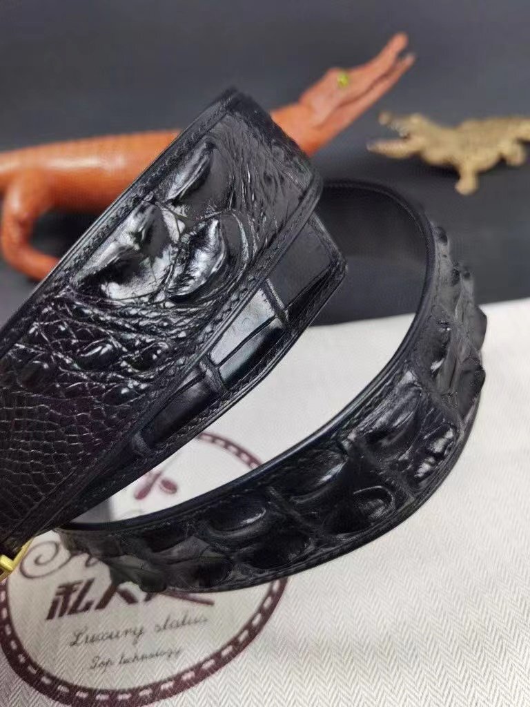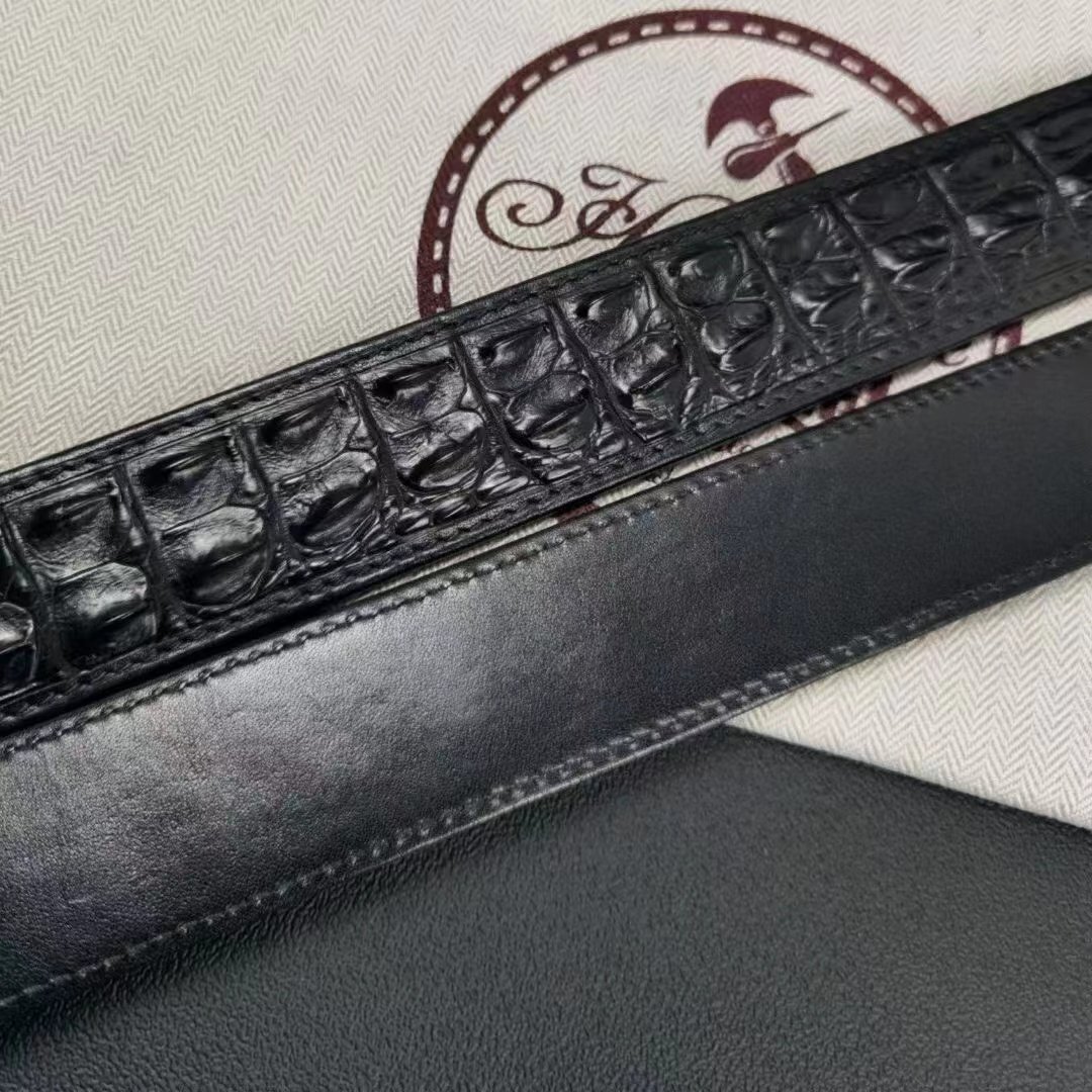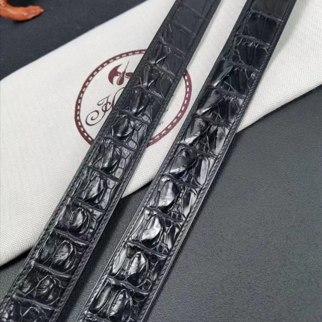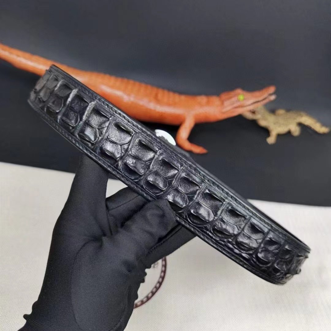 「クロコダイル」背革 一枚革 紳士用 ベルト 本物保証 ワニ革 レザーベルト 総本革 ブラック 男性用 穴あけ器付き バックル色選択可