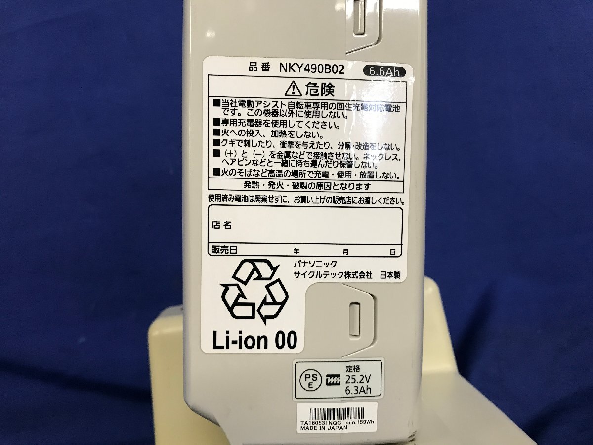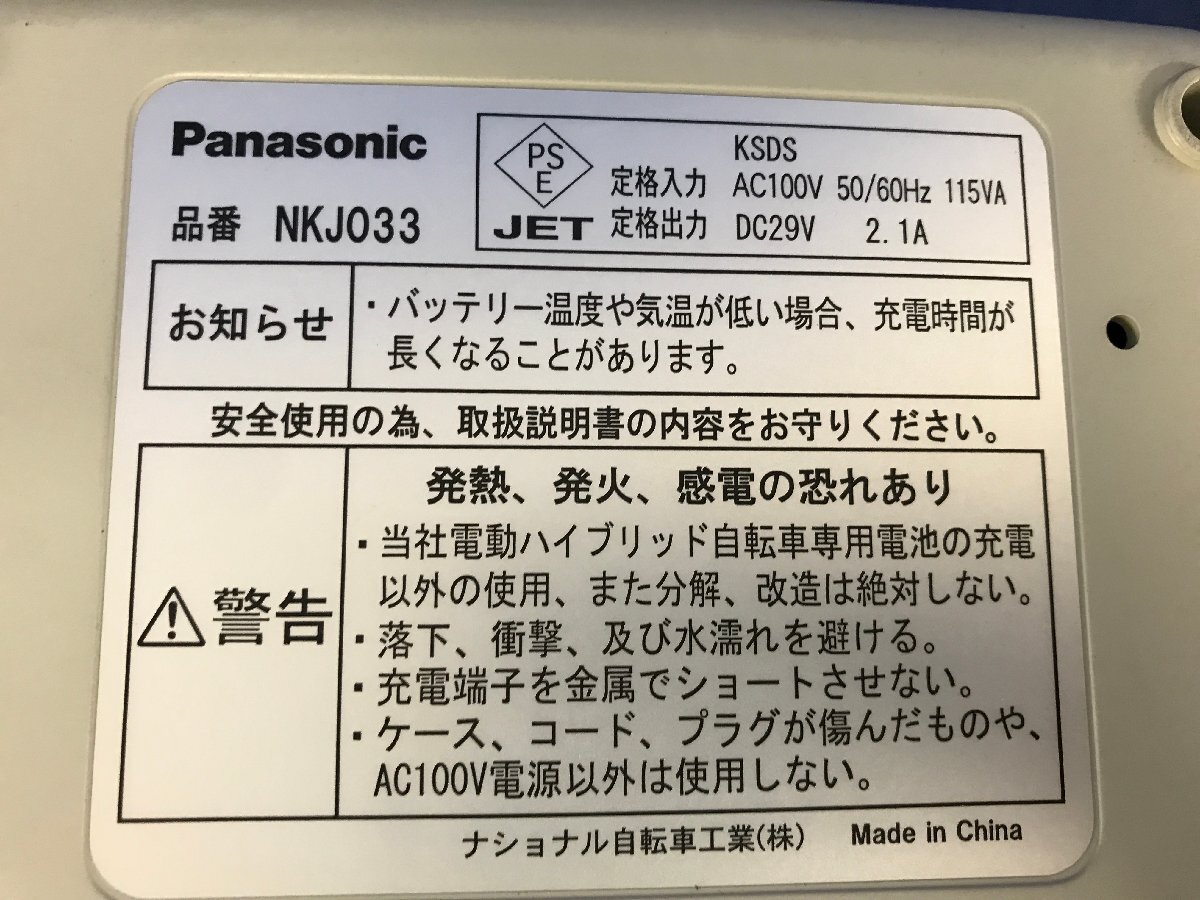 ★55―017★自転車用品 パナソニック 電動自転車 充電器 NKJ033/バッテリー NKY490B02 動作不明 ジャンク品 2点まとめ[80]
