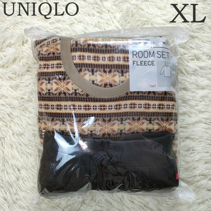 未開封 UNIQLO ユニクロ ルームセット フリース上下セット メンズ XL 部屋着 パジャマ 普段着 男性用 新品未使用 マルチカラー×グレー