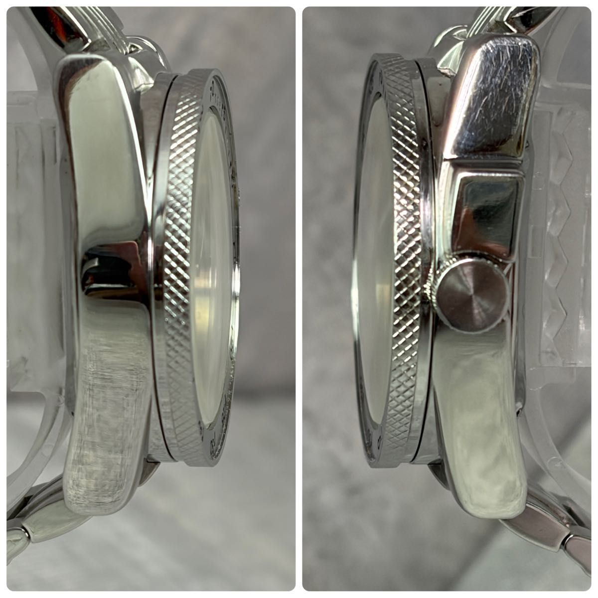 風防、ベゼル、ベルトなどに細かな傷などあります。ガラスに僅かに曇りがあるようにも見えますが、そこまで気にならないと思います。
