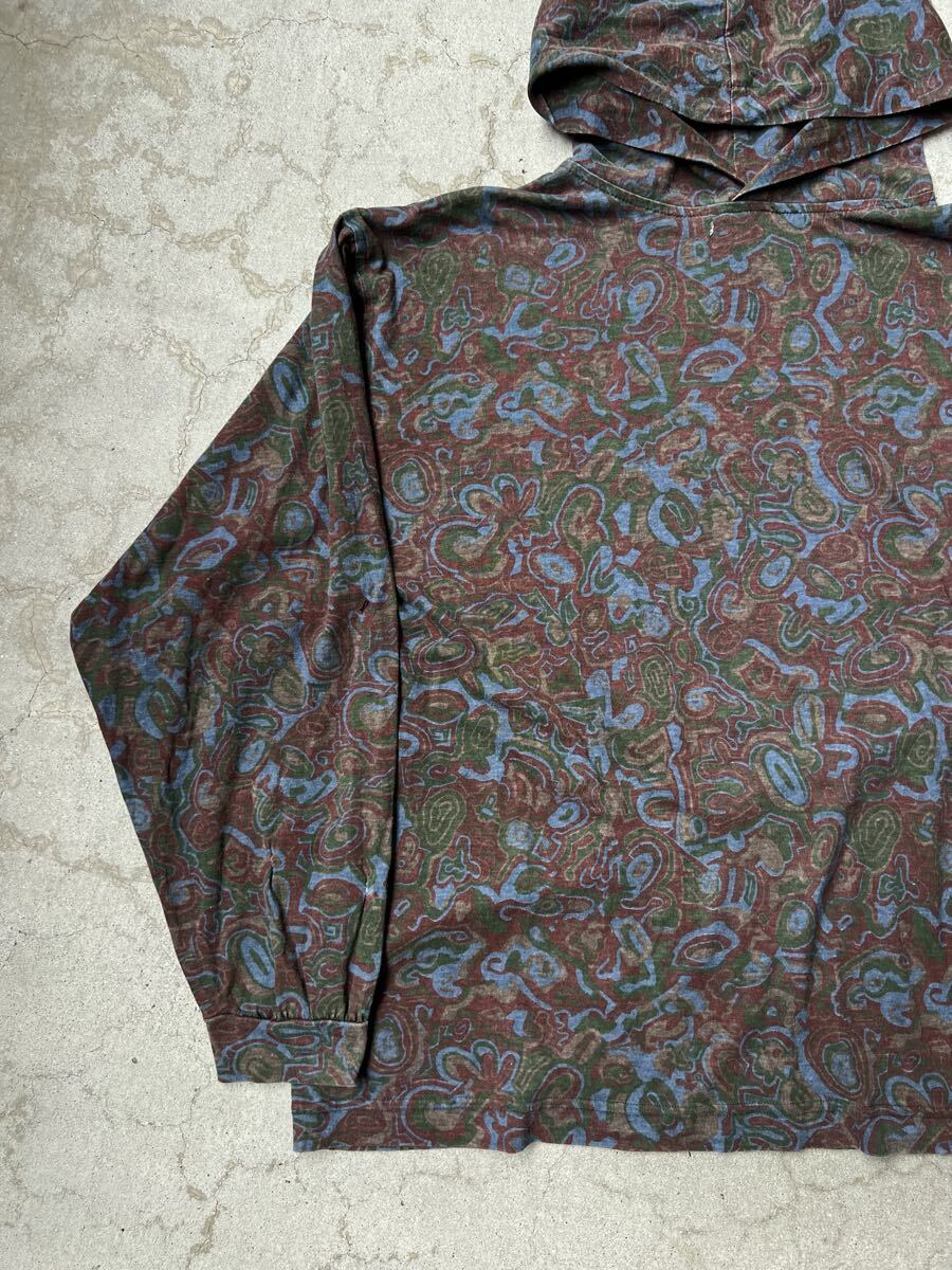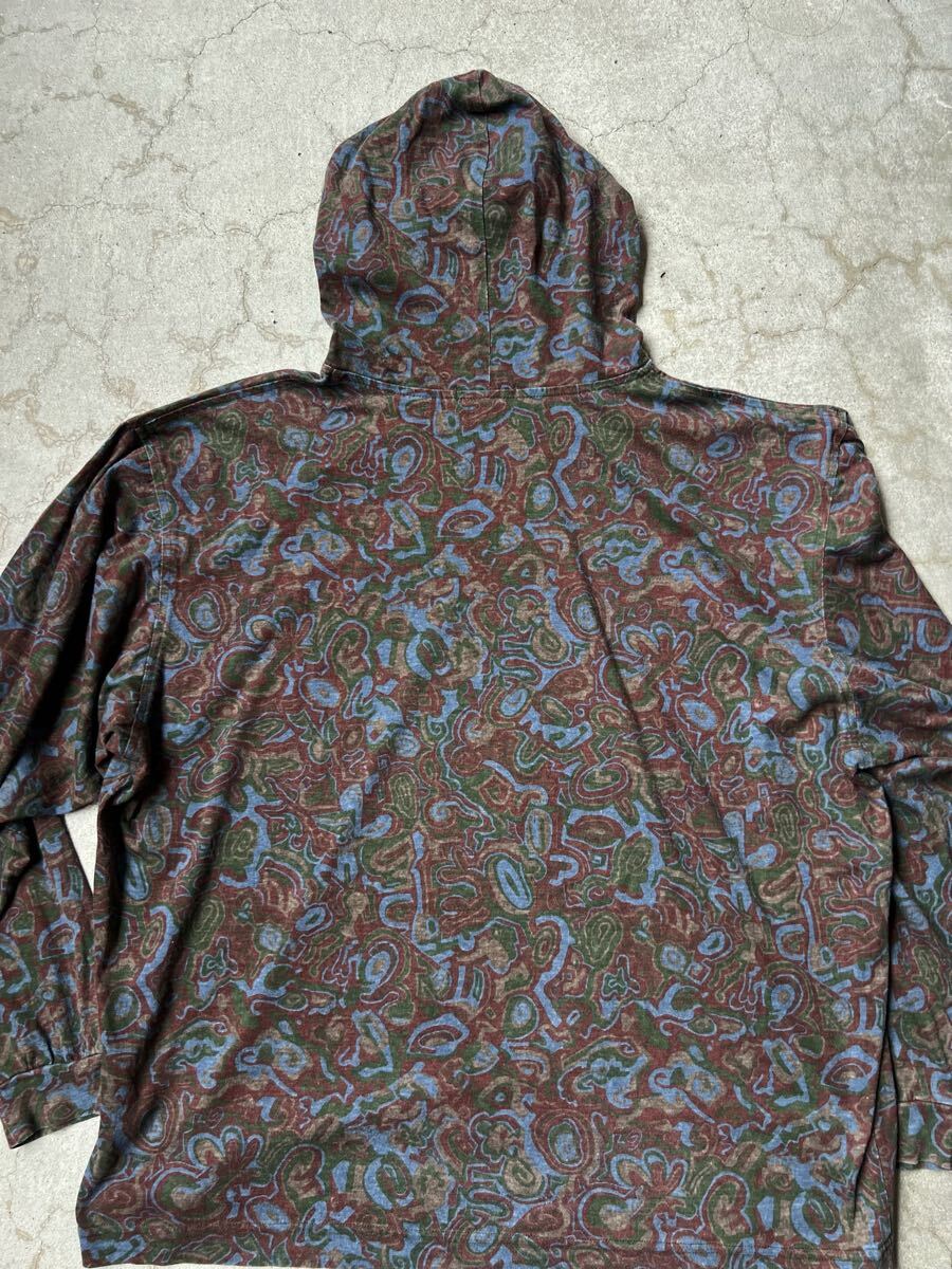 激レア スペシャル 80’s 初期 OLD STUSSY ステューシー 黒タグ USA製 総柄 フードロンTシャツパーカーL