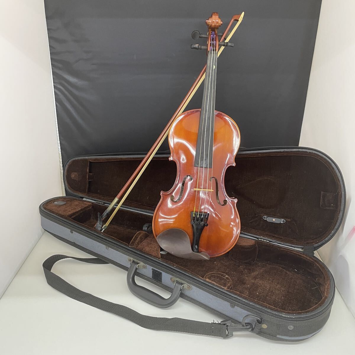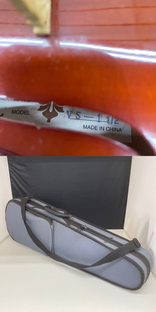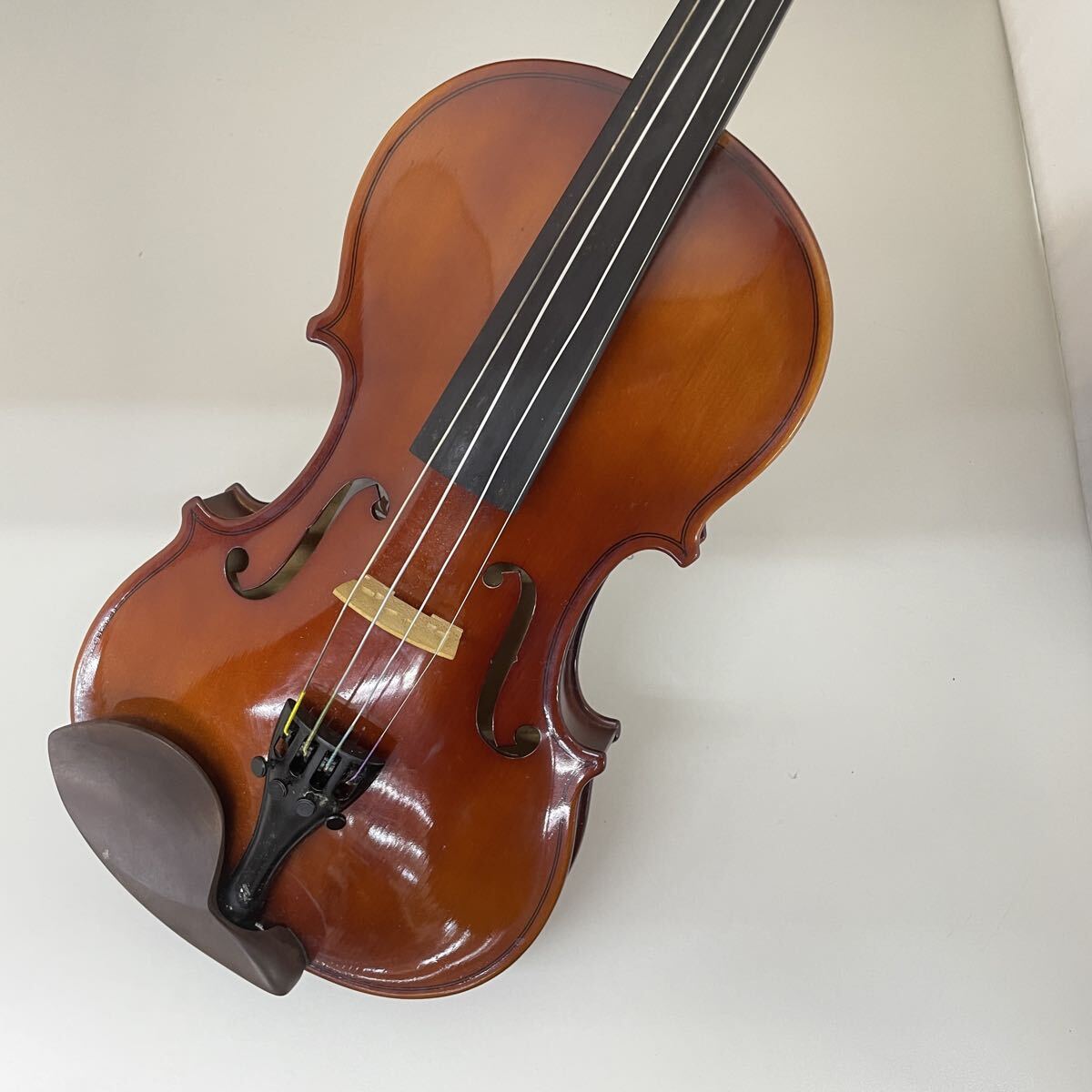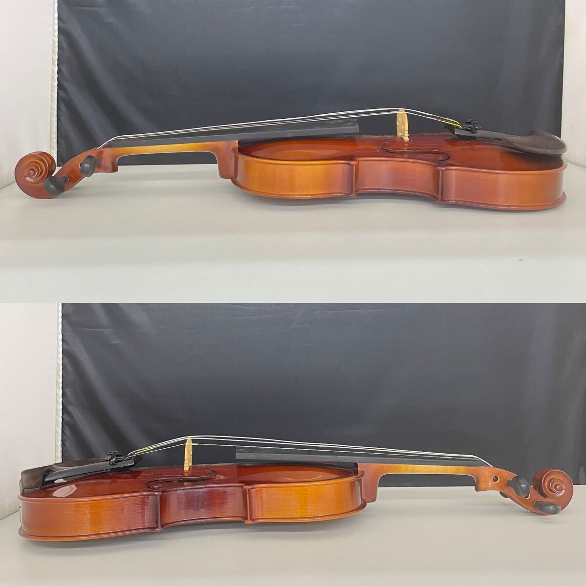 箇所によって汚れがあり、ペグ1つが色褪せがあります。また、緒止めに傷があり、指板にシールが貼られています。他に目立った傷がなく、魂柱は立っています。胴長約53cm