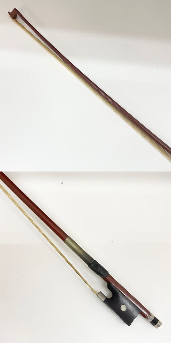 付属した弓のメーカーは不明です。錆や汚れがあり、サムグリップは一部欠けています。長さ約62cm