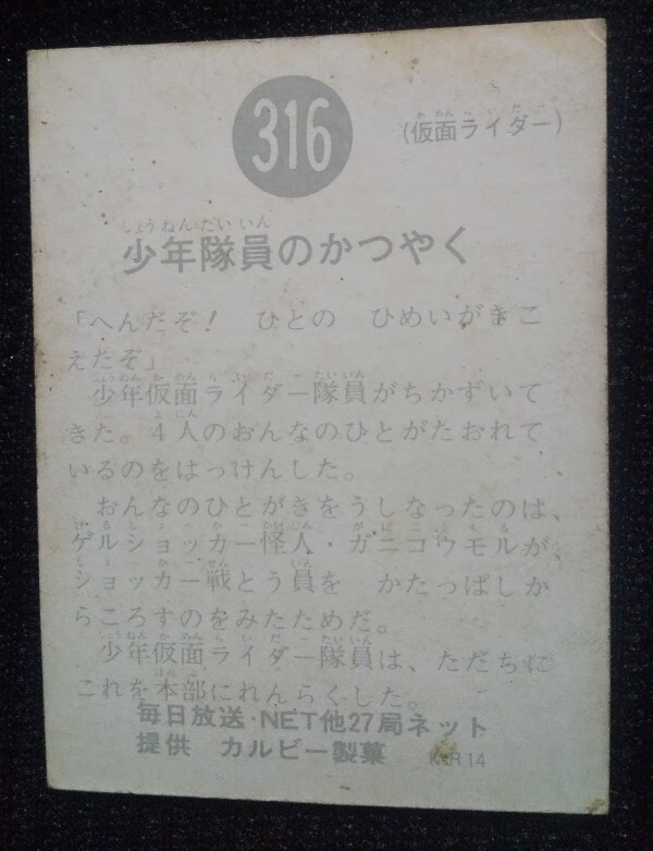 仮面ライダーアルバムにて大事に保管していましたが、当時の子供(私)が扱っていたものですので、多少の汚れや経年劣化はあります