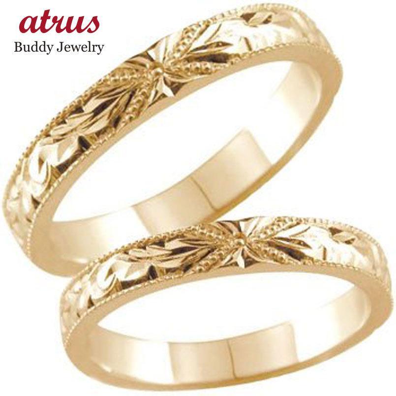 ハワイアン ペアリング 結婚指輪 ハート 結婚記念リング ピンクゴールドk18 ハワイアンジュエリー2本セット 完成まで手作りのハンドメイド