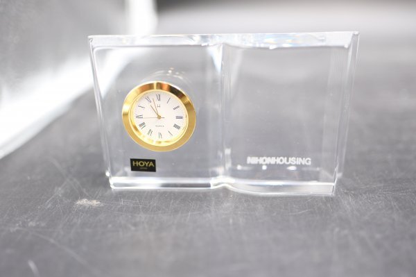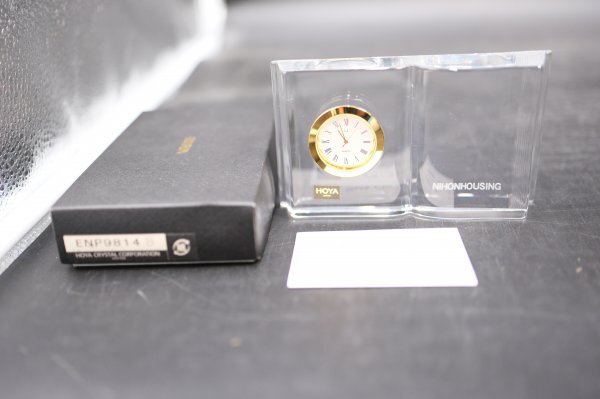 難あり HOYA ENP9814 本を開いた形のガラス時計 箱・取説付き 置き時計 動作確認済 レトロ アンティーク