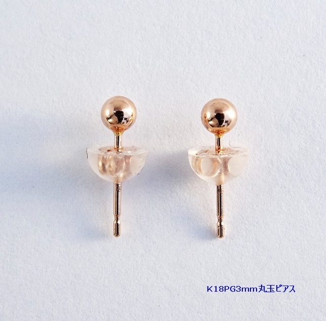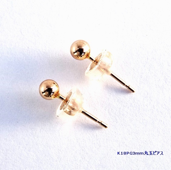 ♪(^^)♪ 定番の丸玉ピアス♪K18PG丸玉3mmピアス◎新品未使用品◎おまけ付き(シリコンキャッチ1ペア)これからの季節に使えるピアスです♪-N