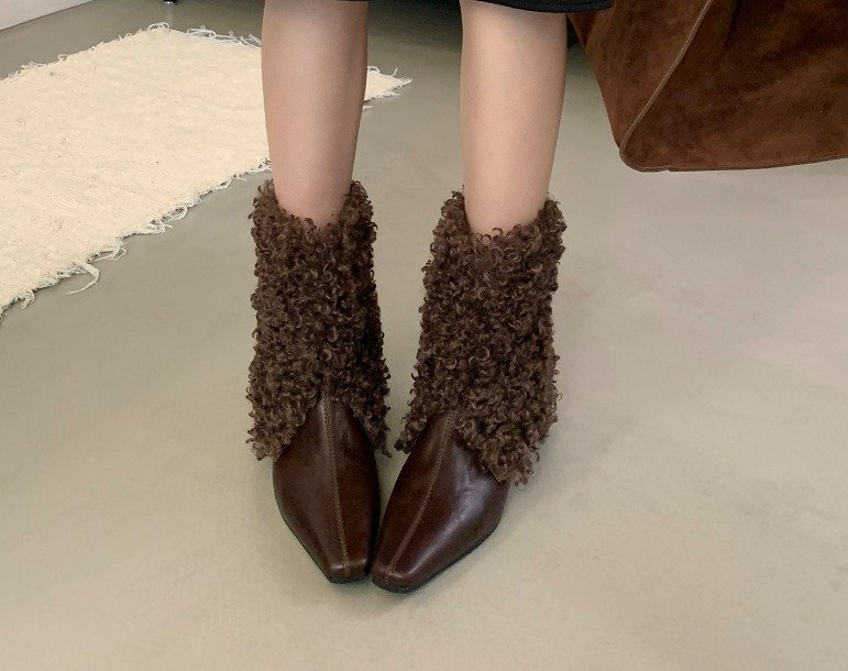 ブーツ ファー付き 切り替え シンプル 【37】23~23.5cm ブラック