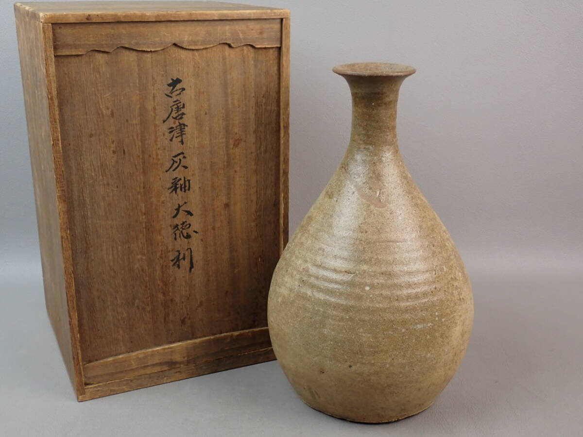 【骨董・茶道具】★古い 唐津焼 古唐津★★灰釉大徳利 gp090vb 酒器 花瓶 花生 花道 華道 伊羅保