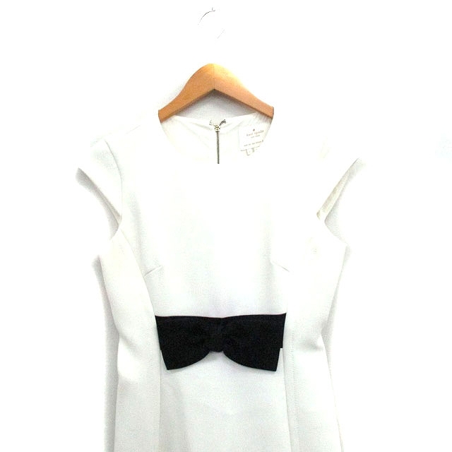 ケイトスペード KATE SPADE 国内正規品 ワンピース キャップスリーブ 膝丈 リボン シンプル 0 アイボリー 白 /KT41 レディース