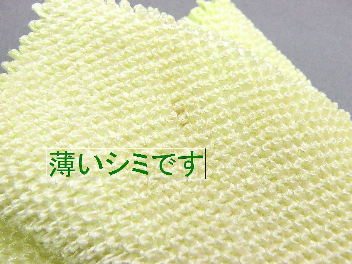 検品いたしましたら写真のような薄いシミのような部分や軽い絞りの斑がございました。
