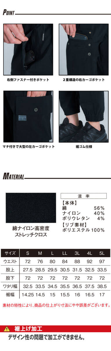 作業服 春夏 アイズフロンティア [数量限定] コットンナイロンストレッチジョガーパンツ 3213S 3Lサイズ 93マーキュリー