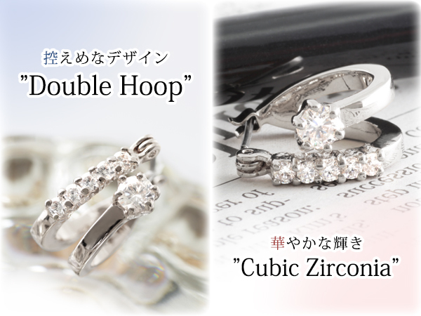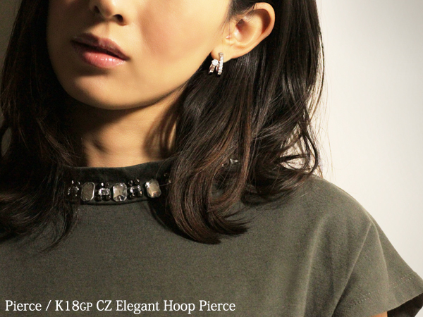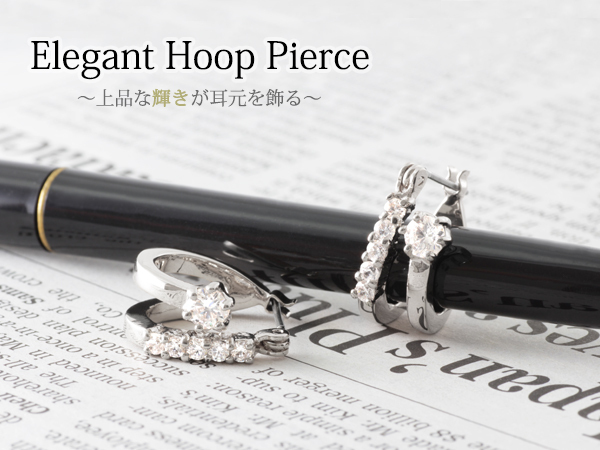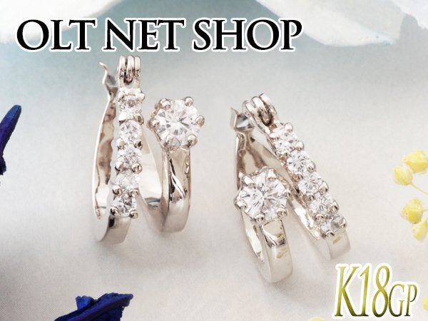 フープ ピアス レディース リング シルバー 18金 18kコーティング ホワイトゴールド 上品 / K18GP CZダイヤ エレガントフープピアス WG