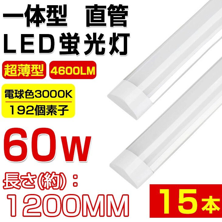 即納 送料無料 高輝度 15本セット 超薄型 一体型 直管 LED蛍光灯 60W形相当 電球色3000K 4600LM 180度広角照射 1年保証 AC 110V D15B