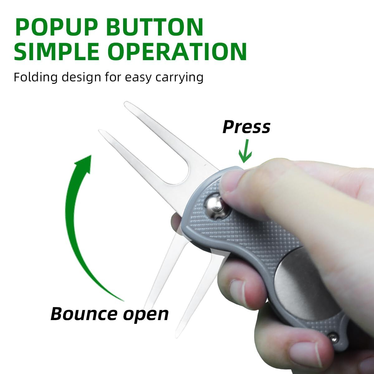 【多機能性】ゴルフ芝の修復に使用したり、工具の磁石を使用して取り外し可能なゴルフボールに接続したりして、より徹底した清掃を行います。