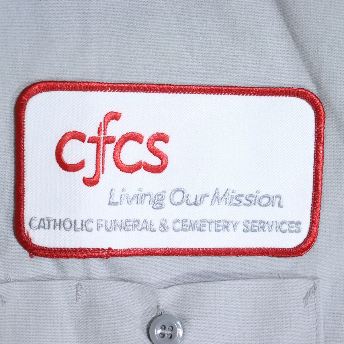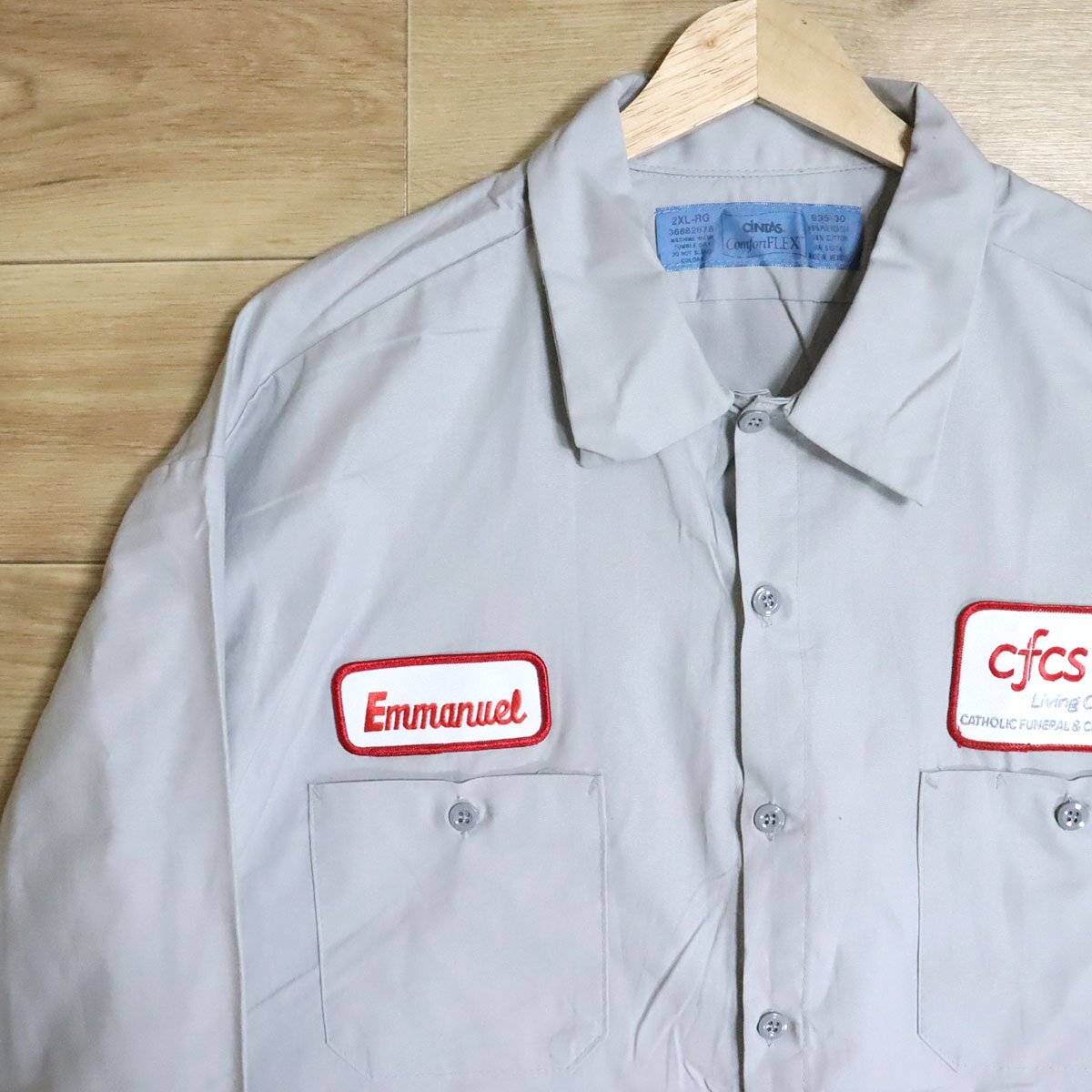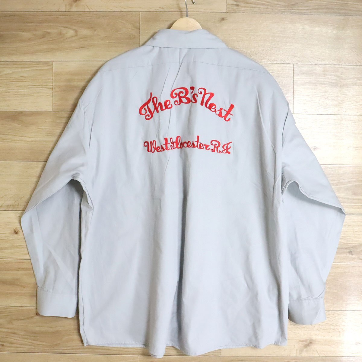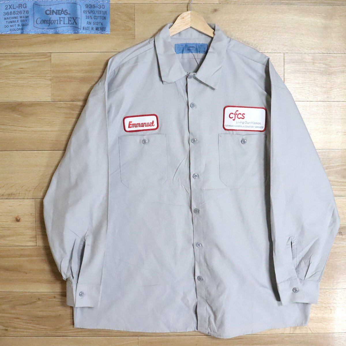 I5T/D9.25-4 アメリカ古着 Cintas シンタス ワークシャツ 2XL XXL バック刺繍 文字 The B‘s Nest ワッペン バイカー