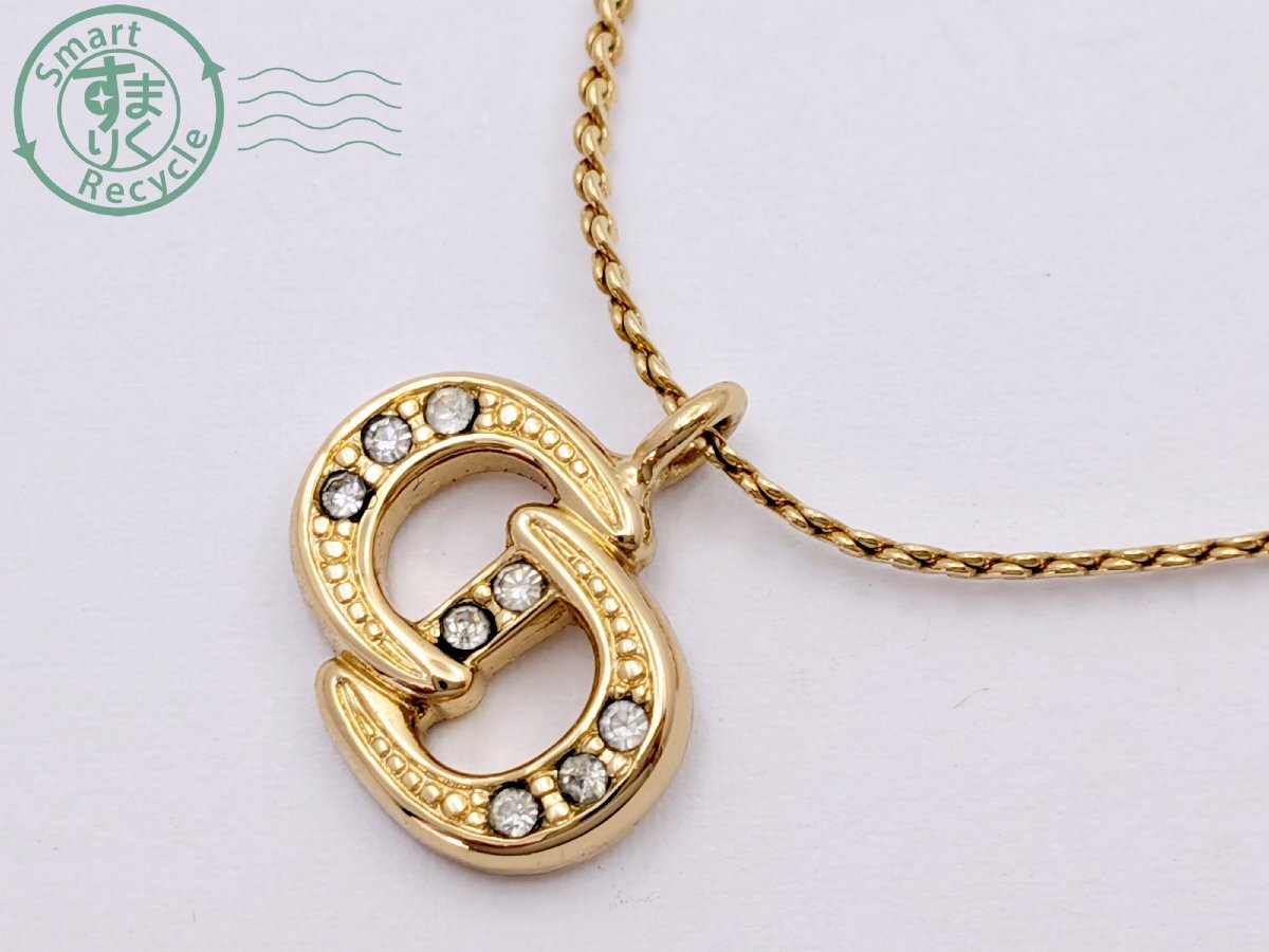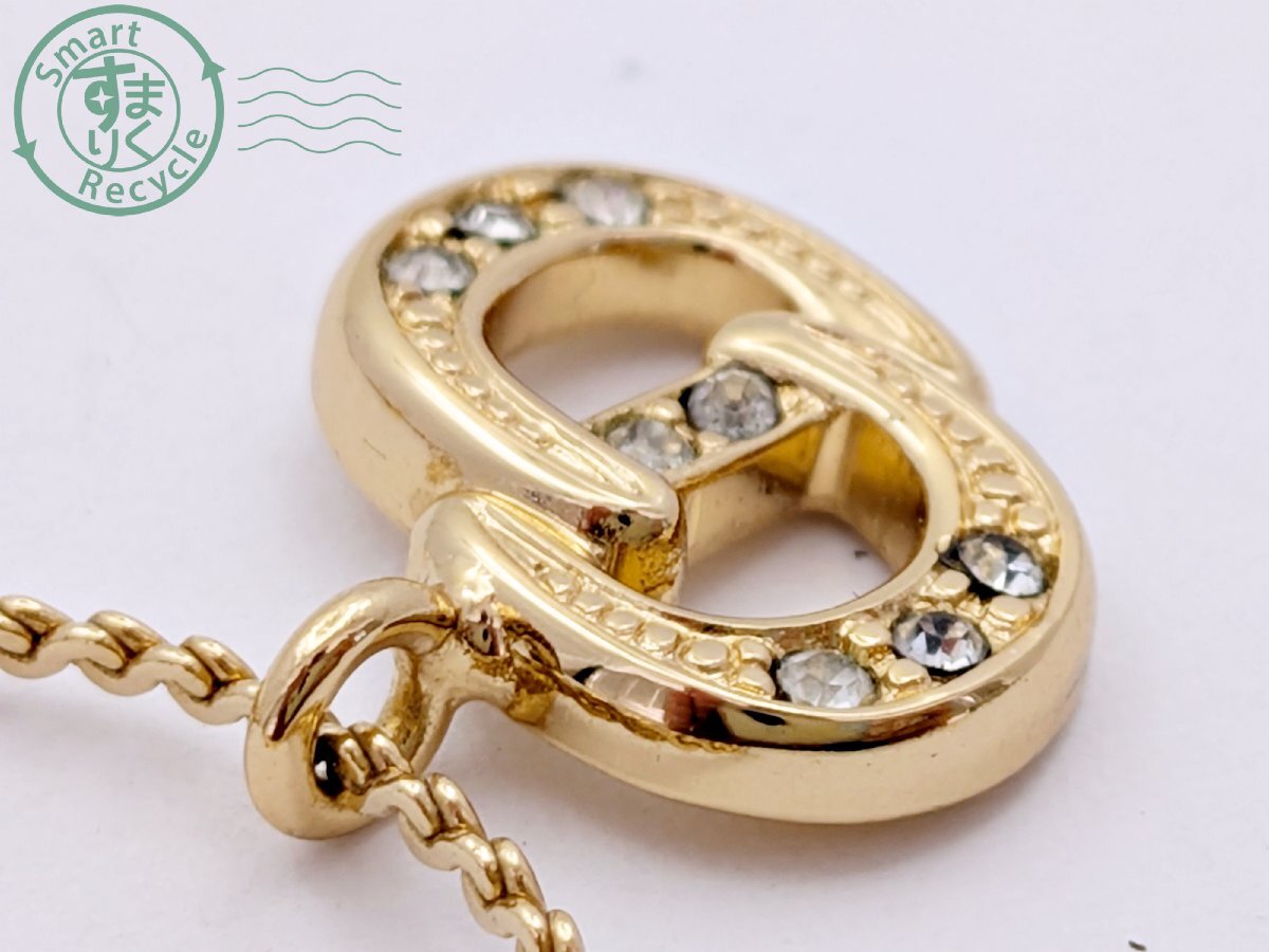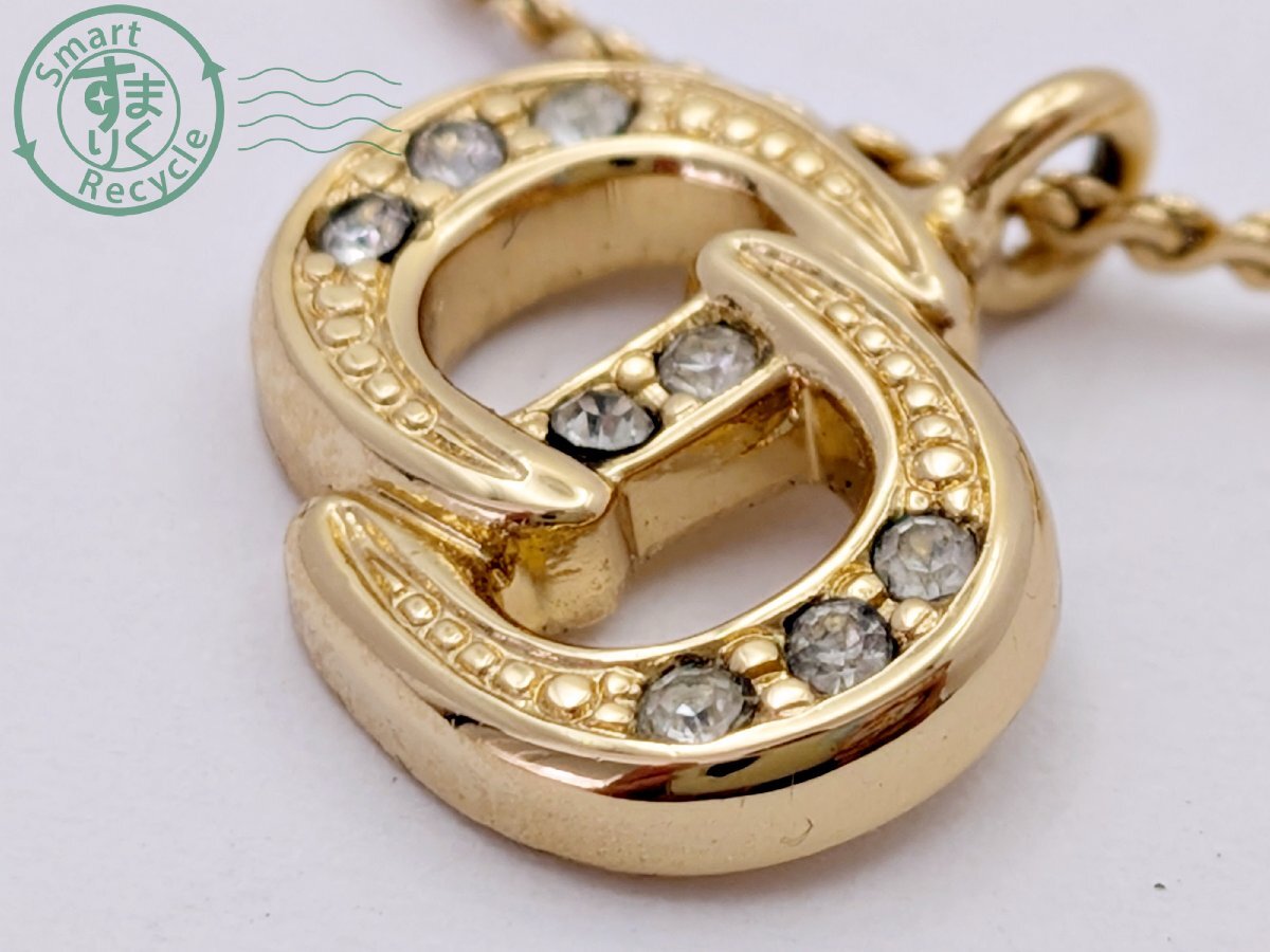 ★ Christian Dior クリスチャン・ディオール ネックレス ペンダント 8P ストーン CD ロゴ ゴールドカラー アクセサリー | |||