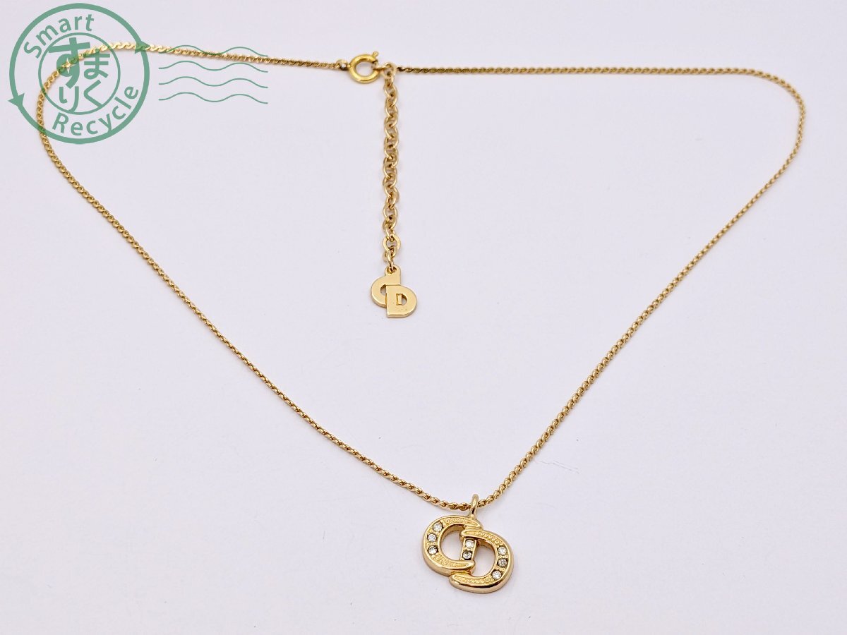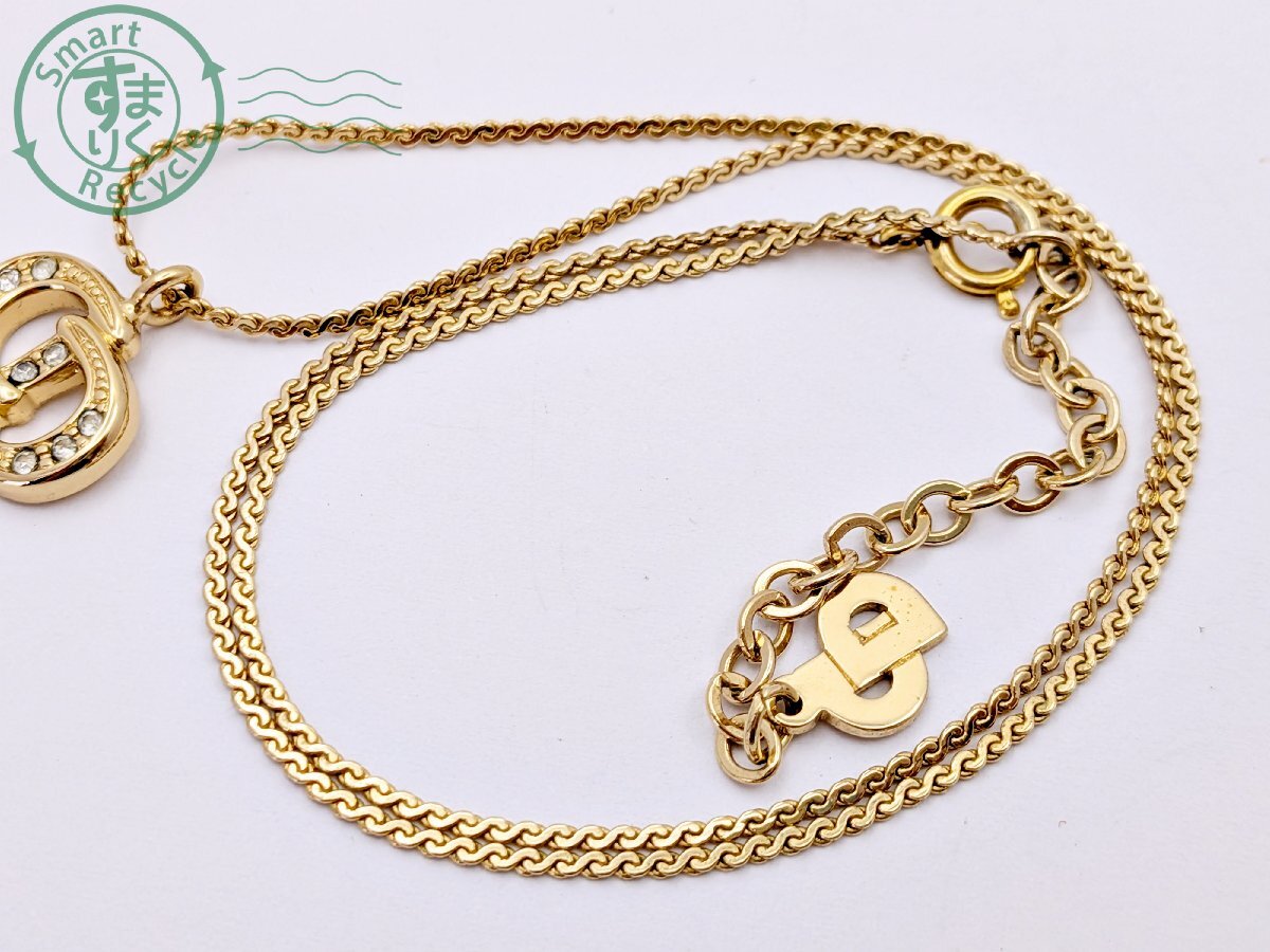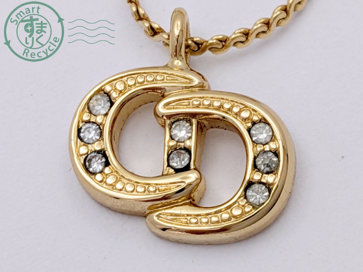 ★ Christian Dior クリスチャン・ディオール ネックレス ペンダント 8P ストーン CD ロゴ ゴールドカラー アクセサリー | |||