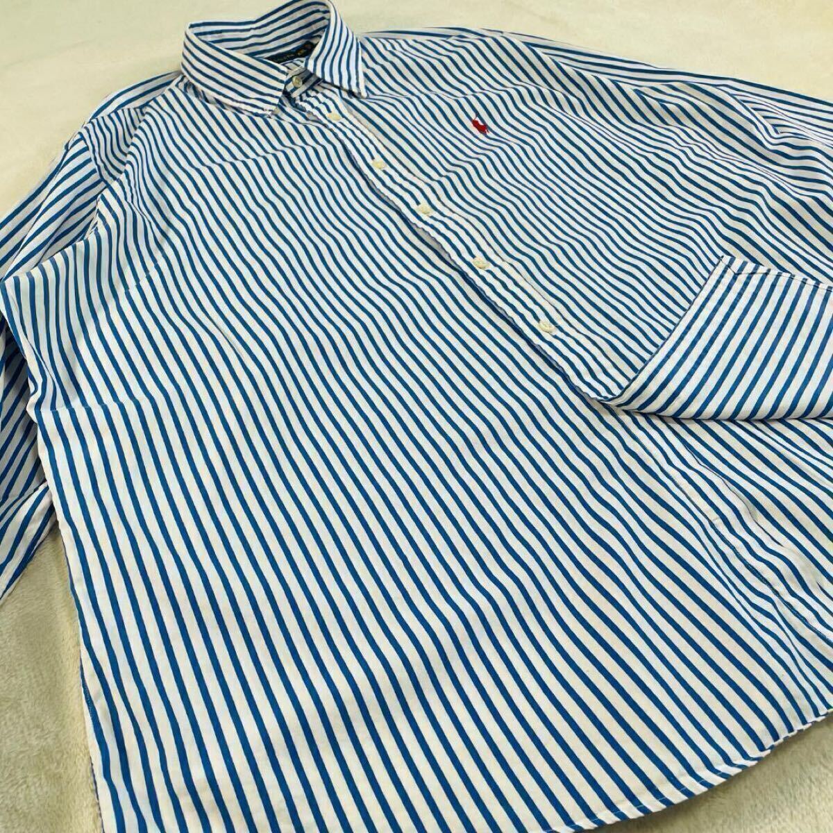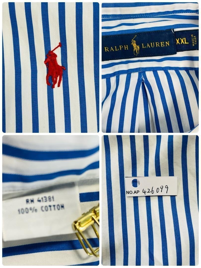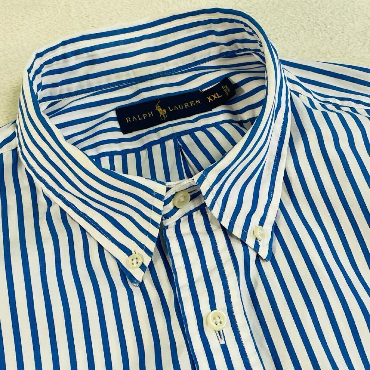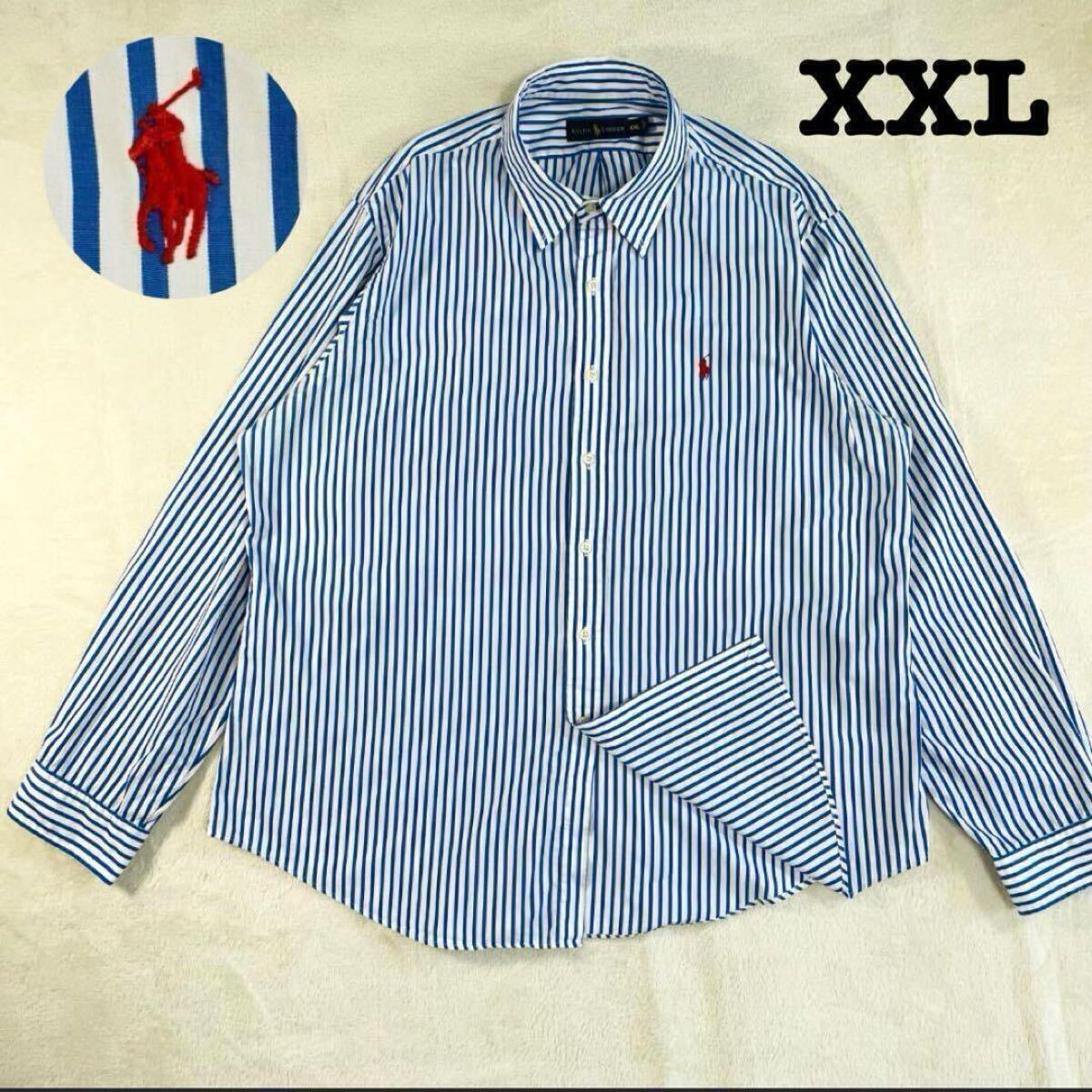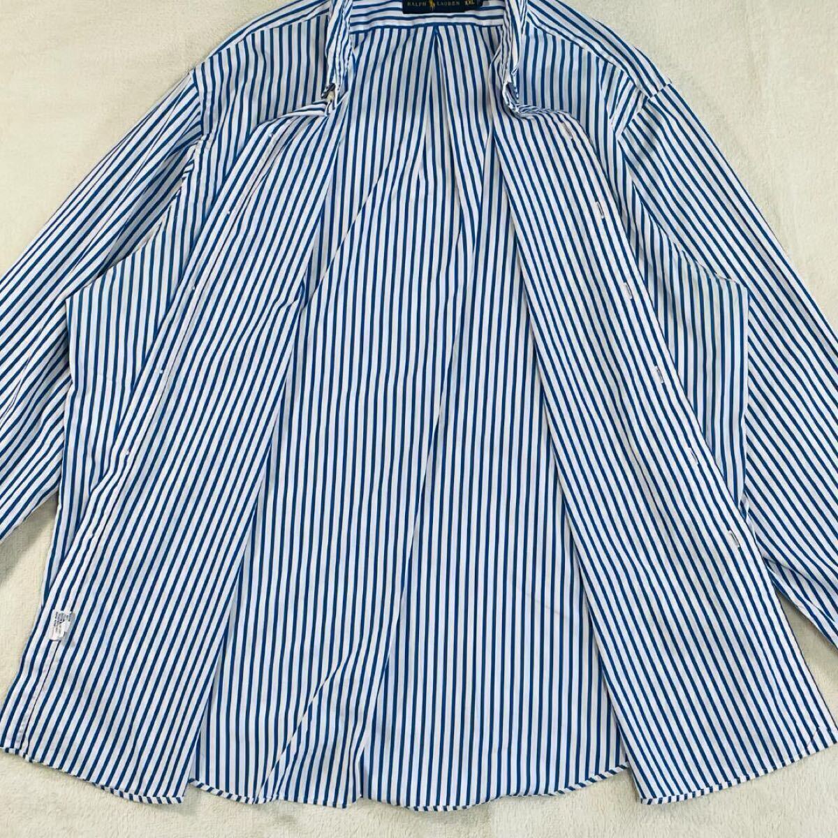 ラルフローレン メンズ 長袖シャツ 大きいサイズ ストライプ XXL ブルー 綿