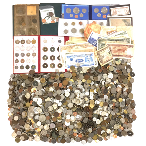 1円 日本 寛永通宝 穴銭 他 アメリカ リバティコイン 25セント / 韓国 100ウォン 等 古紙幣 古銭 総重量約18.6kg |