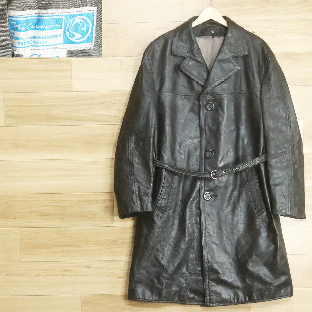 &3T/S7.15-3 ドイツ Nikator モーターサイクルコート 本革 レザーカーコート 52 メンズ レザージャケット 革ジャン ヴィンテージ