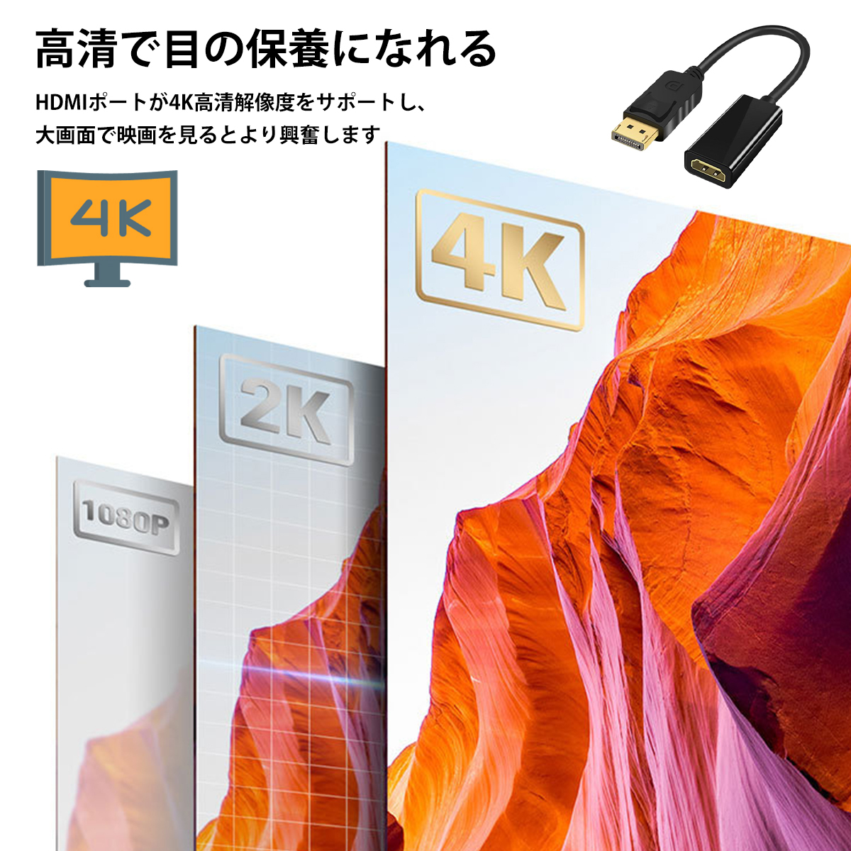 ※ご注意 | 1.ご購入の際は、お使いのデバイスがこのインターフェースをサポートしているかどうかをご確認ください。 2.本製品はDPをHDMIに変換することのみが可能であり、リバースリンクはできませんので、出力方向を明確に確認してください。 3.手工測定にはわずかな誤差がありますので、ご理解ください。 4.ディスプレイや照明の影響により、実際の色が画像と若干異なる場合があります。 |