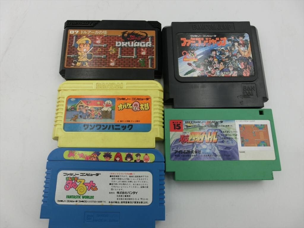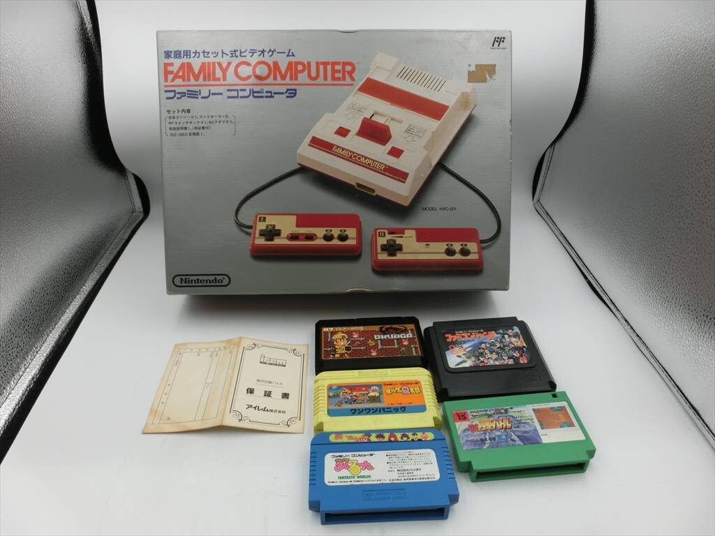 T【4s-75】【100サイズ】任天堂 ファミコン 本体セット HVC-001/ソフト5個付き/テレビゲーム/ジャンク扱い/※傷、汚れ有